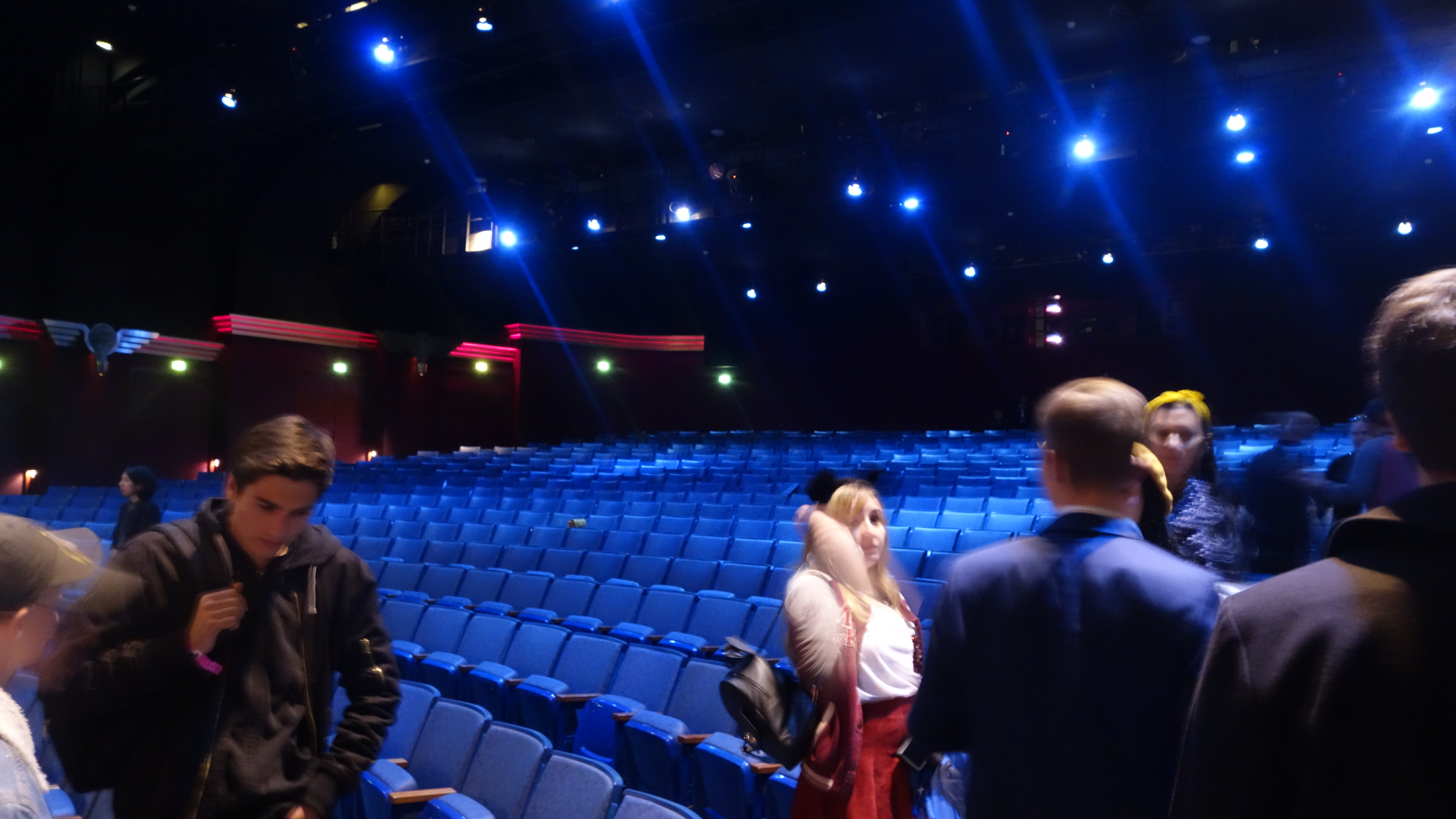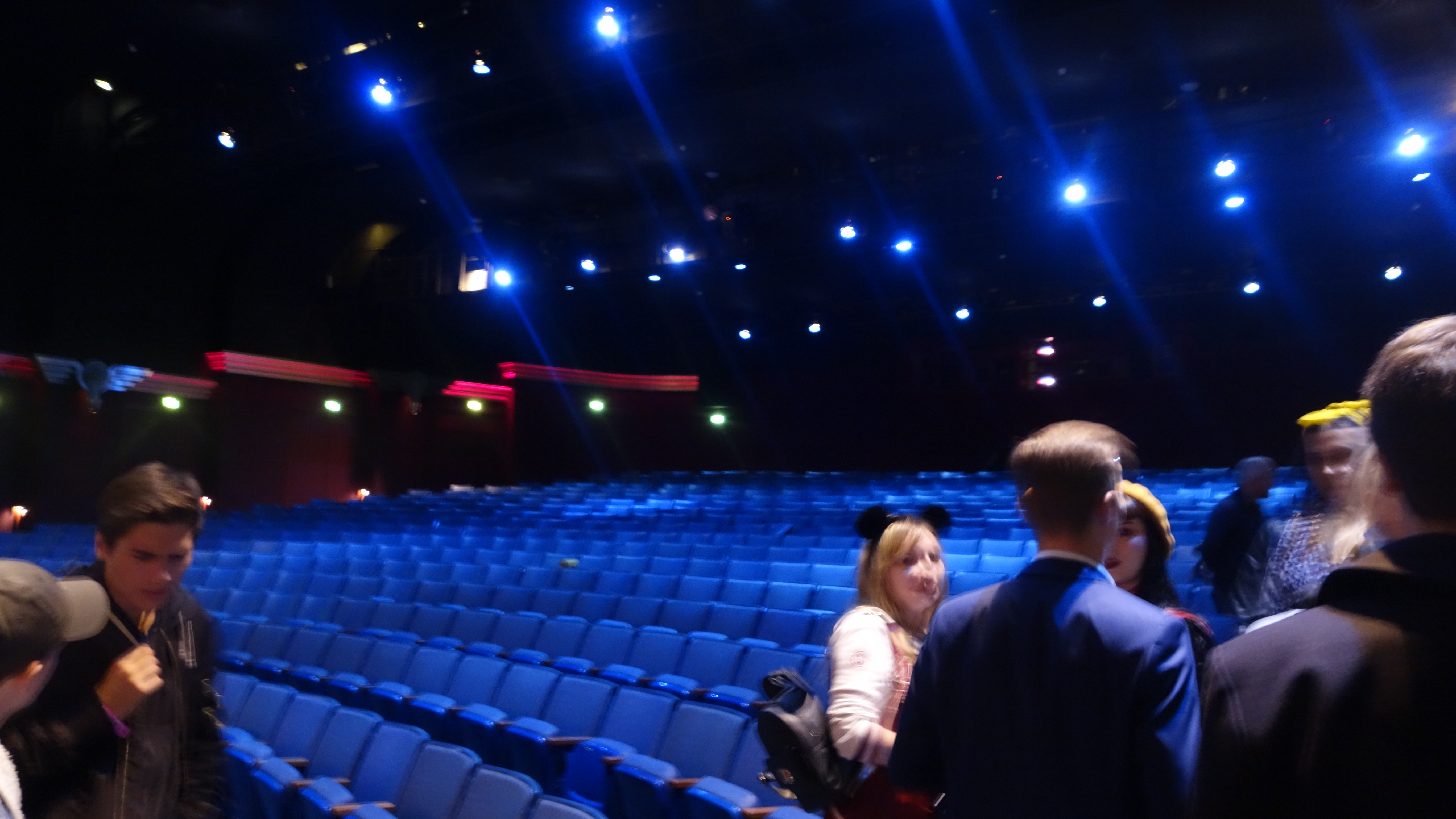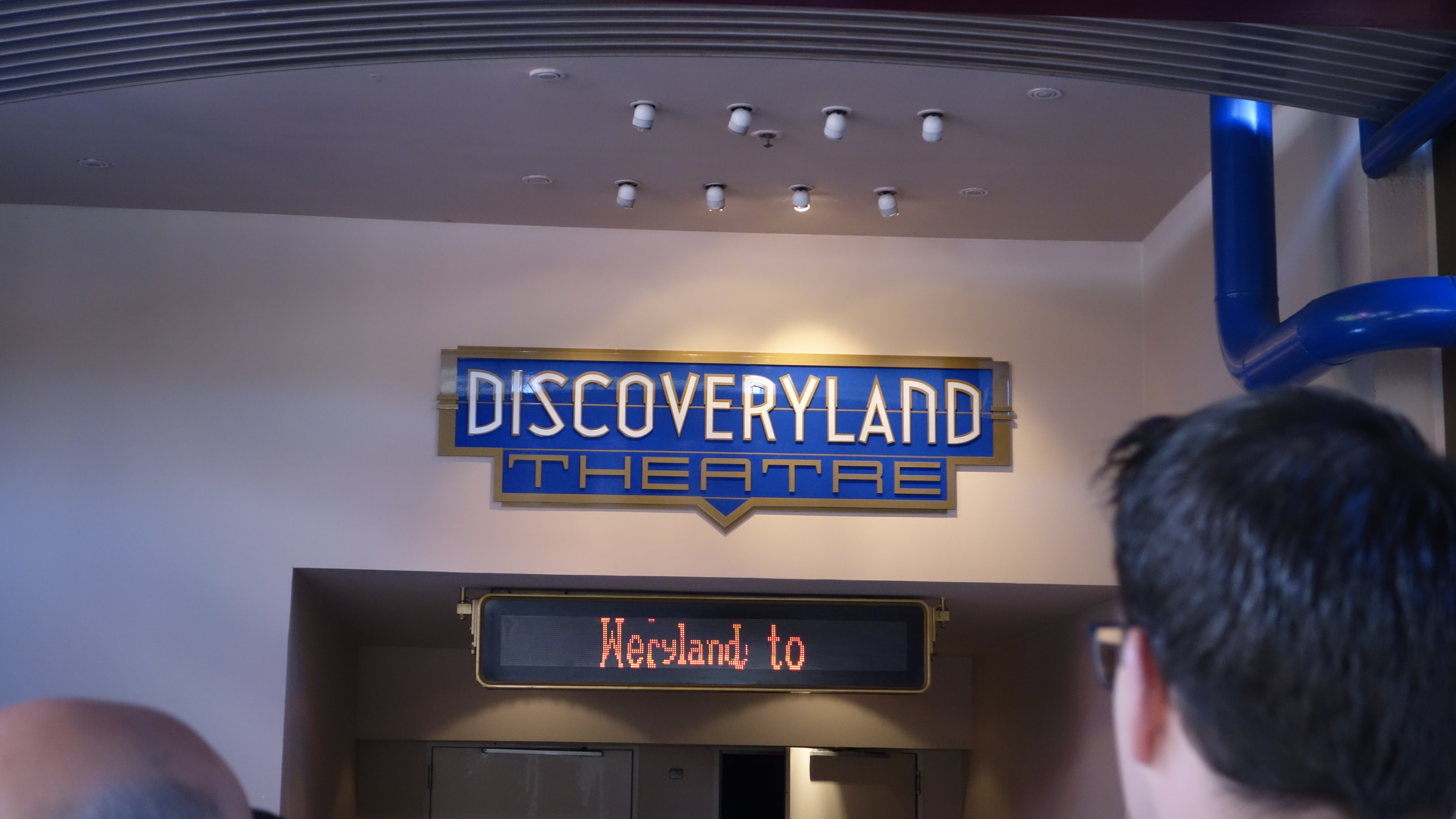 The first thing I noticed was that the theater is bigger. A lot bigger. While the rows aren't very long, they go further back than Magic Kingdom's does and at a slope. Also, Discoveryland Theater was built for Captain EO when the Park opened in 1992 so of course the design and structure are much different. As for the stage, it's much smaller than what I'm used to. This theater is also used for presentations in addition the attractions and I don't believe that's the case at Magic Kingdom.