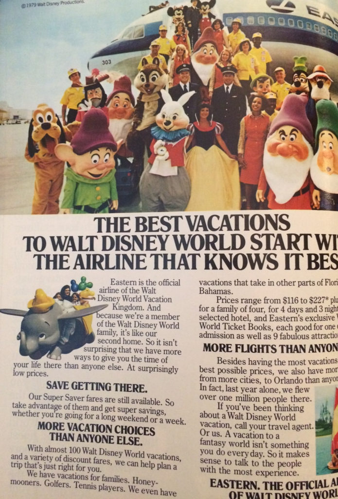 From the early 1970s until the end of the partnership, Eastern was in lockstep with Walt Disney World in promoting the resort in their media campaigns. From print to television, Eastern and Disney incited curiosity and wonder with their advertisements.