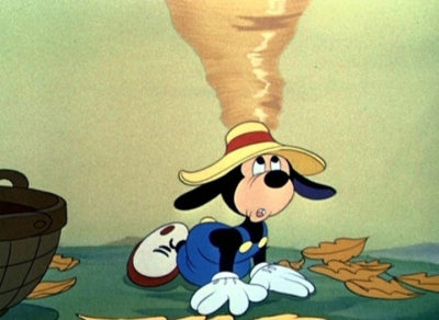 Minnie Mouse is busy baking and Mickey wants a piece of her cake. He agrees to do yard work in exchange, but a tiny tornado wreaks havoc on the pile of leaves Mickey scooped. When the daddy tornado shows up, Mickey is in for some real trouble. Effects animators would have been responsible for the leaves, but possibly the tornados as well, which act more like characters in this short.