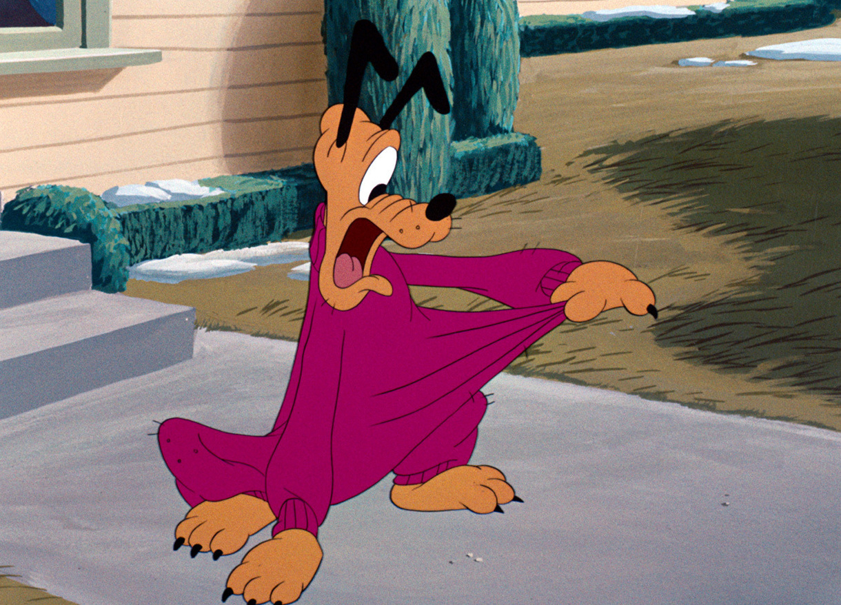 This short takes place during winter, with the ground partially covered in snow. Pluto’s trials to remove the sweater take him through water and snow, leading to lots of effects animation shots. Minnie Mouse and Figaro co-star in this hilarious short.