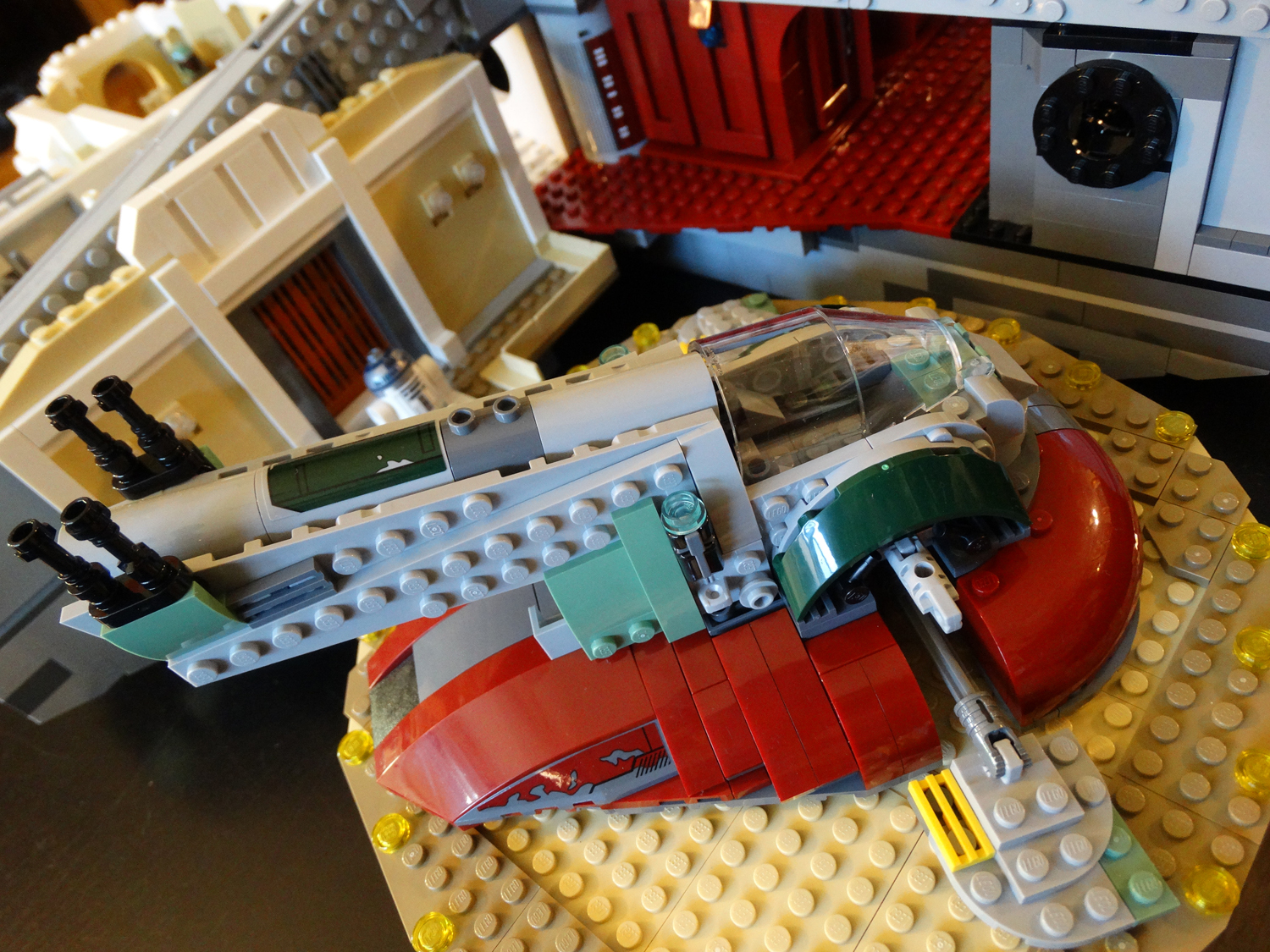 Also included are Boba Fett's famous spaceship Slave I and a Twin-Pod Cloud Car. These ships are built to a very small scale, just big enough to hold their respective characters and very little else. The set provides a LEGO representation of Han Solo frozen in carbonite, and that block does fit snugly into Slave I's underbelly for easy transportation to Jabba the Hutt.