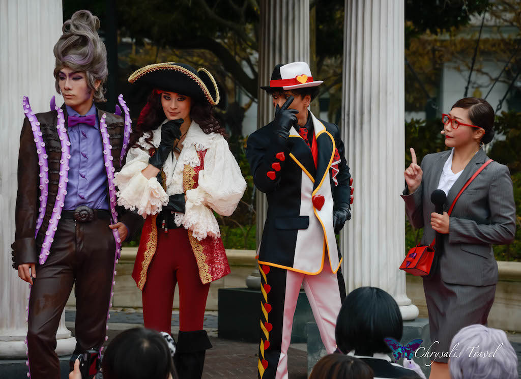 From what we could gather (it was all in Japanese), Dr. Facilier was hosting something like a talk show with Disney Villains. Only, you’ve never seen the Villains like this before.