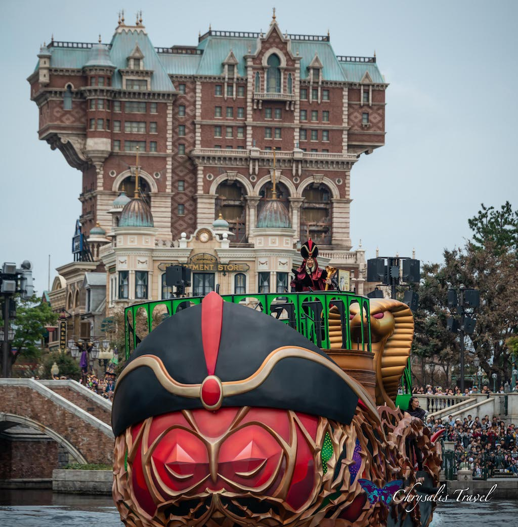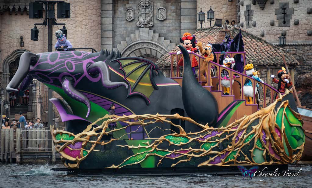 In this article, we highlight Disney’s Halloween 2018 season at Tokyo DisneySea themed: ‘Villains Rise Again!’ We are thrilled to see the return of the “The Villains World” water pageant, with some amazing new additions.This is our second Halloween season at the TDR. See more of our coverage from Halloween 2016 in the “Ghoulishly Delightful Halloween Experiences” articles Part 1 (Tokyo Disneyland) and Part 2 (Tokyo DisneySea).