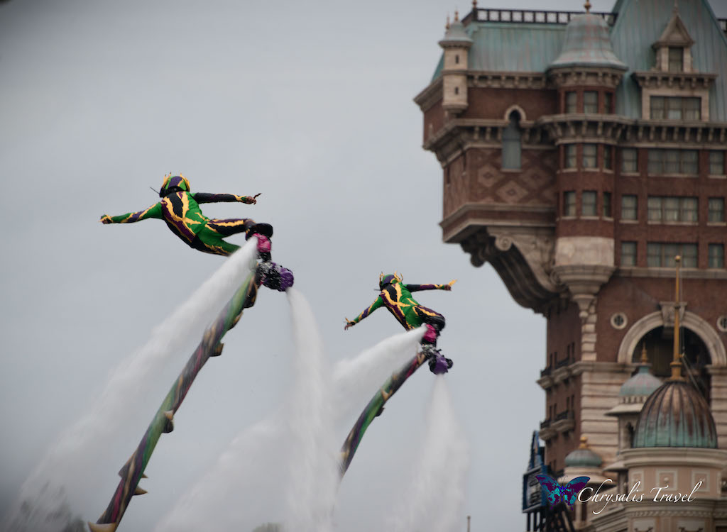 The amount of entertainment scheduled daily at Tokyo DisneySea is almost overwhelming. Every day on Mediterranean Harbor, “The Villains World” parade runs twice, in addition to the 35th Anniversary “Happiest Celebration on the Sea” water pageant, and the nightly spectacular, “Fantasmic.”