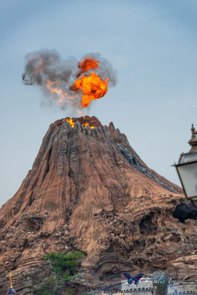Even Mount Prometheus participates in the show, blowing Mickey-shaped fireballs.
