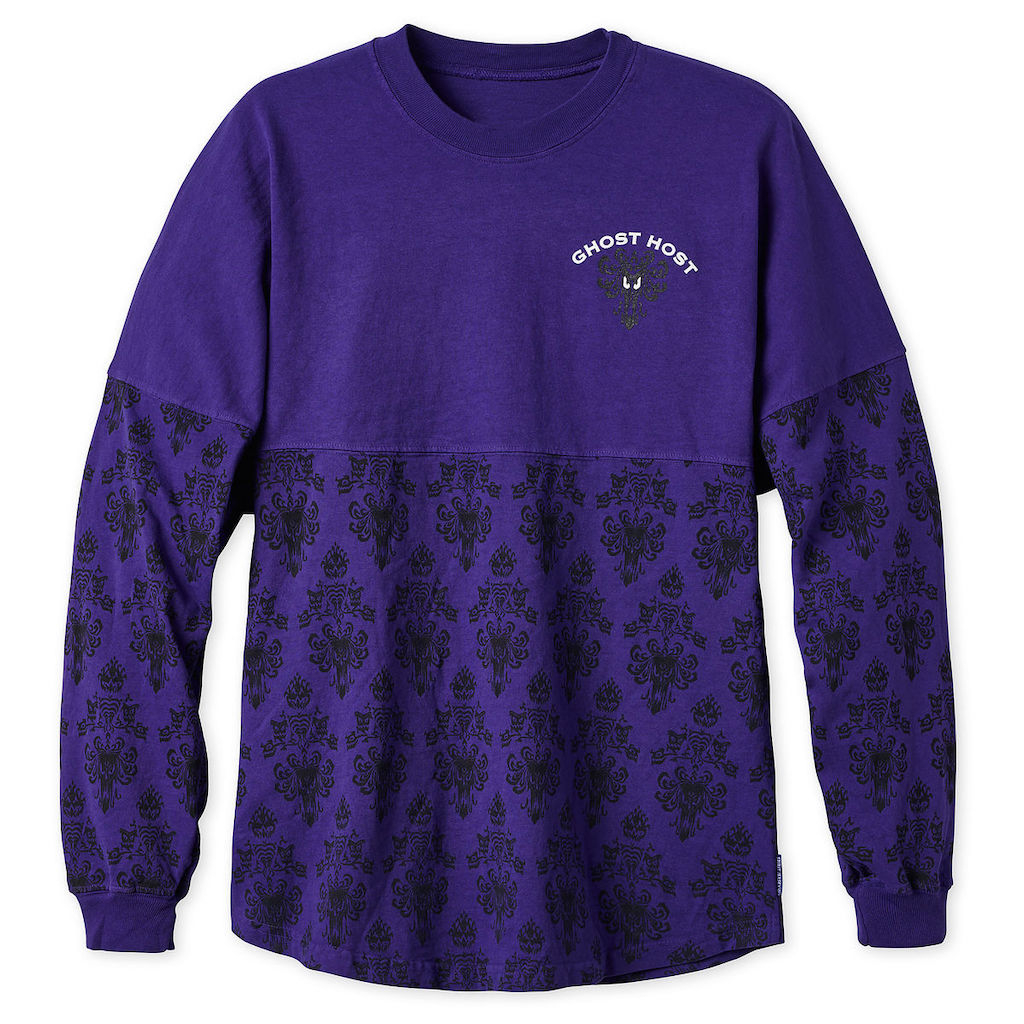 The ghosts may be grim and they may be grinning, but so will you, in this purple jersey that glows in the dark! Featuring the signature wallpaper design from the mansion, and a "Ghost Host" logo, you'll look killer in this top. Talk about happy haunts."it's a small world"