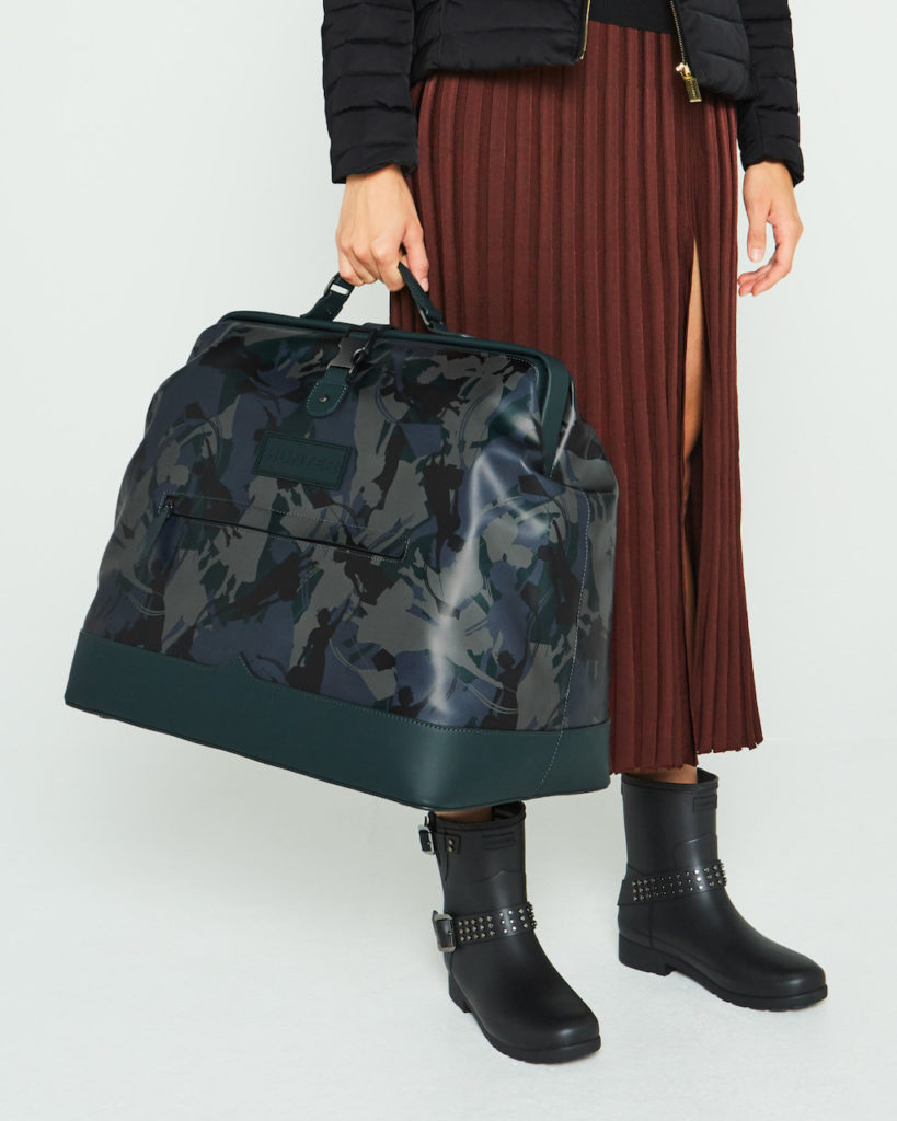 "The Original Mary Bag has been specially created for the launch of ‘Mary Poppins Returns’ and is based on the carpet bag from the original film. Crafted from our signature water-resistant rubberized leather, it features the iconic Hunter parachute top clip closure and detailing."