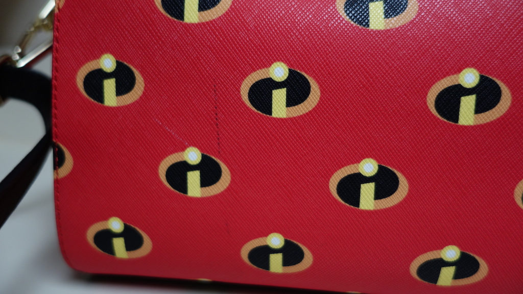 As I said before, the outside of the bag is a bold red background with small Incredibles logos. The logos are the perfect size — not too big, not too small but easy enough to recognize. In fact, everywhere I've taken it, someone has asked, "Is that an Incredibles purse?!" to which I respond, "Yes! It's by Loungefly and you can get it on Fun.com!" Everyone who's stopped me has thought it was cool. And it is; it's just that the design is little louder than I'm used to and it's a tad bit too large for me.
