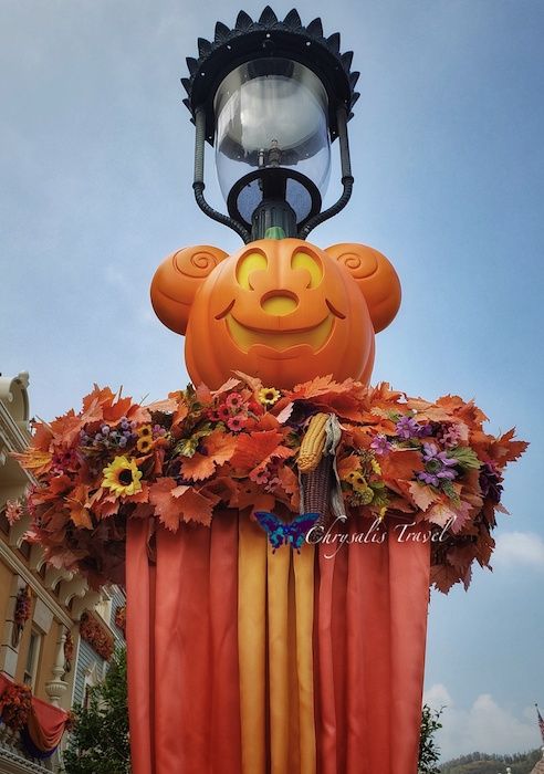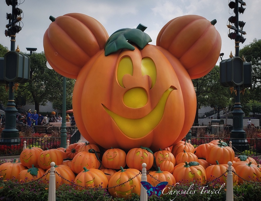 We found unique Halloween Mickey lamppost decorations at every Disney Park (we visited five of the six Disney castles this October). These whimsical Mickey pumpkins at Hong Kong Disneyland were particularly endearing.
