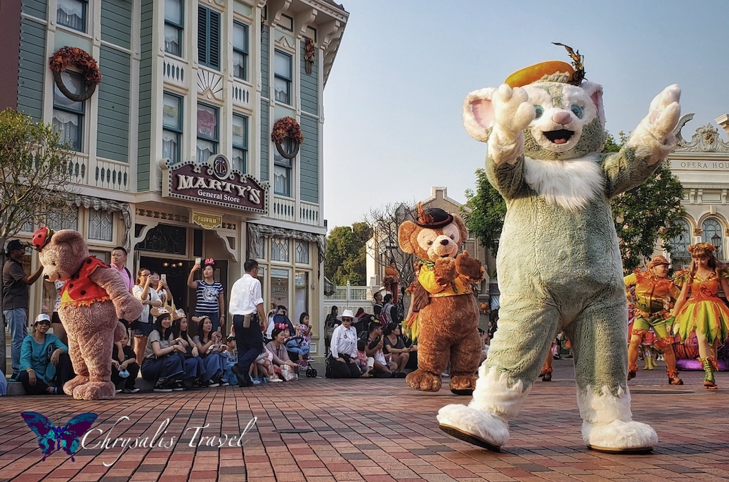 Of course, in the Asian Disney Parks, Duffy and friends are absolute celebrities. Here are (from left) ShellieMay, Duffy, and Gelatoni. We didn’t see StellaLou or Cookie in the parade.