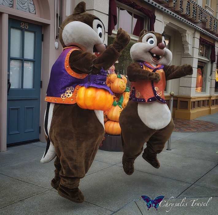 Meeting characters is a huge part of the Disney Park experience. For many, getting photos with characters in their exclusive seasonal costumes is a must. We noticed that Mickey and friends were dressed differently for their meet and greets than for the “Halloween Time Street Party” parade.Mickey and Minnie hosted guests under the large gazebo on Main Street.