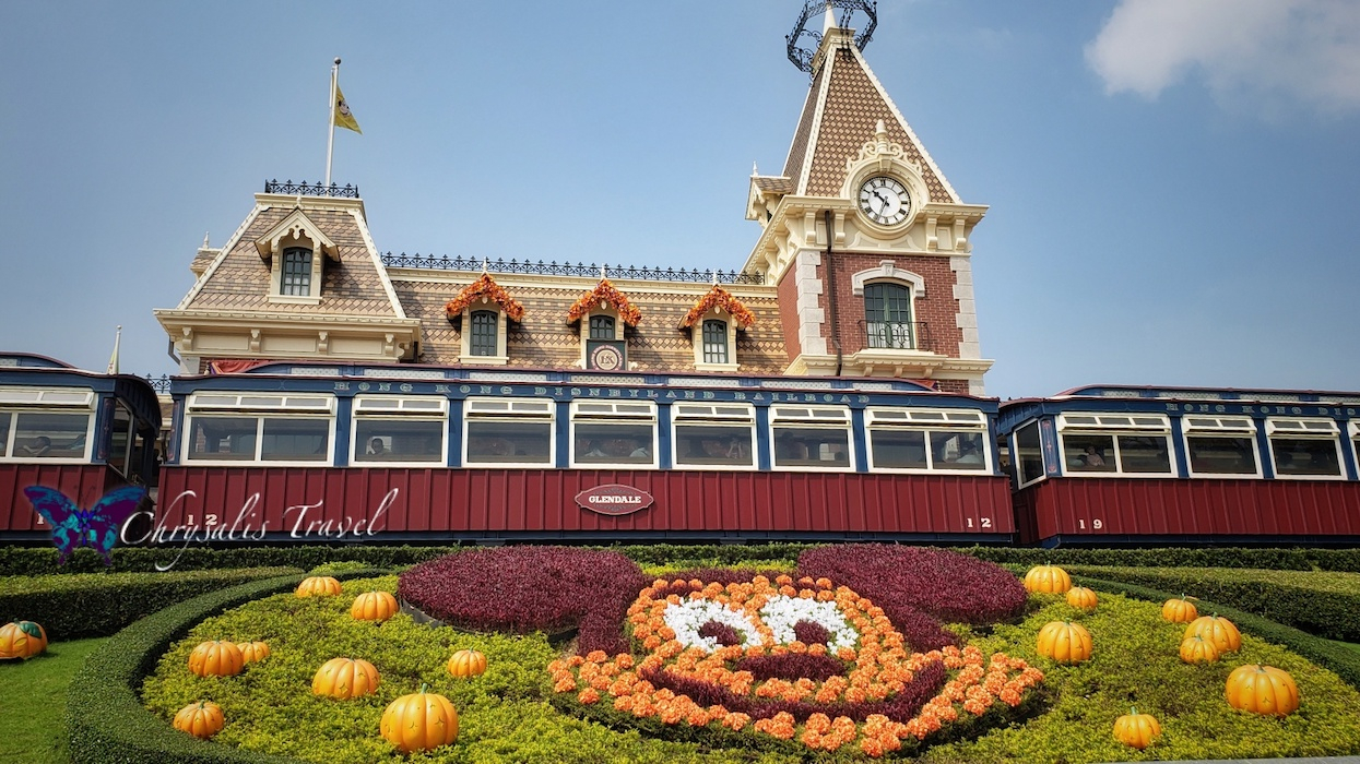 We always love seeing the Mickey topiary in front of the train station. Star-studded pumpkins accompany this orange-themed Mickey. See the train above? The HKDL train cars are named after Southern California cities like Glendale, Burbank, and Anaheim.