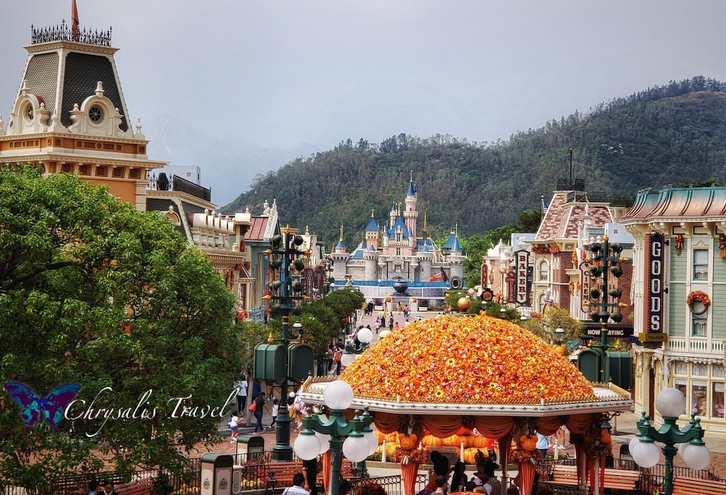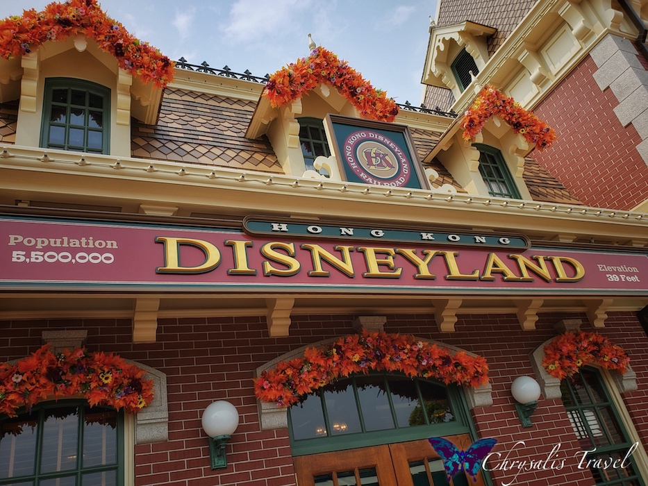 The train station was decked out with festive fall foliage. Did you know that the elevation of Hong Kong Disneyland is only 39 feet above sea level?