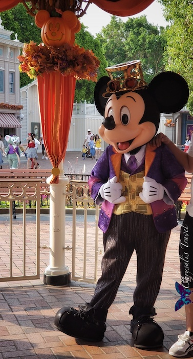 Meeting characters is a huge part of the Disney Park experience. For many, getting photos with characters in their exclusive seasonal costumes is a must. We noticed that Mickey and friends were dressed differently for their meet and greets than for the “Halloween Time Street Party” parade.Mickey and Minnie hosted guests under the large gazebo on Main Street.