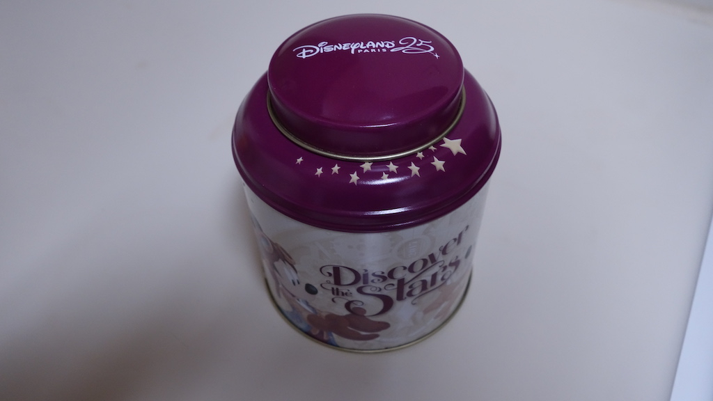 For the past three years, my husband and I have made tea every night before we go to sleep. When we visited Disneyland Paris in 2017, we stayed at a hotel with a mini kitchen complete with tea kettle. The only problem was we hadn’t brought any tea with us. We searched around the Disney Store in Disney Village and just as we were about to give up hope, turned over this canister to read “thé” (“tea” en Francais)! This worked perfectly as it met our need for tea and provided us with a souvenir of the Park’s 25th Anniversary. I love that Mickey is in his steampunk costume that he wears in the Disney Stars on Parade, parade!