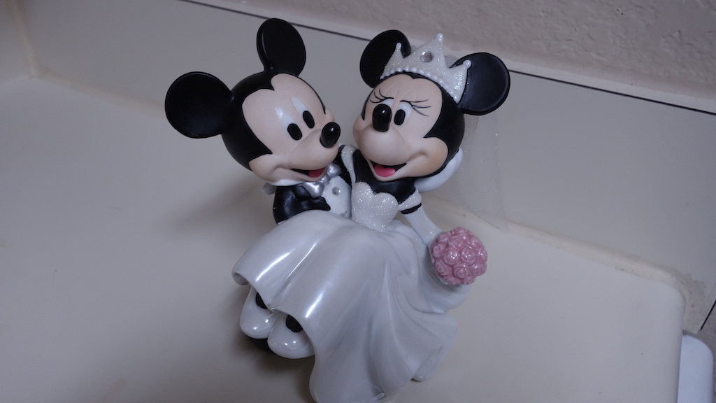 Speaking of our wedding, our good friend, Aaron, gifted us with this Mickey and Minnie figure and it’s been on display with our wedding photo ever since.