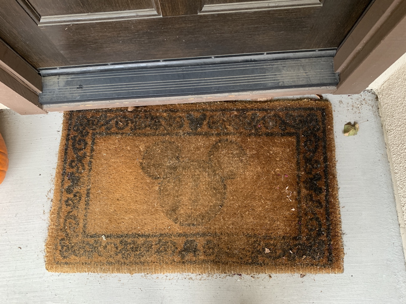 This mat may be faded and you can hardly make out that it is even a Mickey item anymore, but my parents bought me this welcome mat when I first moved into my own place in Central Florida. It has followed me everywhere that I have lived since. It shows that I finally had a place of my own, but that the spirit of Mickey will always inhabit it with me. Visitors may no longer be able to tell what it is, but I will always know. Mi casa es Mickey casa.
