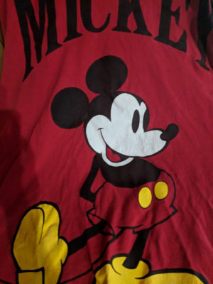I’m a big guy. I used to be an even bigger guy. But I still wanted to wear Disney clothes. The one thing I found I could wear was this red, not-to-subtle nightshirt with a giant Mickey on the front. So I bought three of them and wore them on almost every visit to the park. My best / most embarrassing moment in it was when a kid thought I was the walk around and came up and hugged me. Not sure I’ve ever told that story publically before…