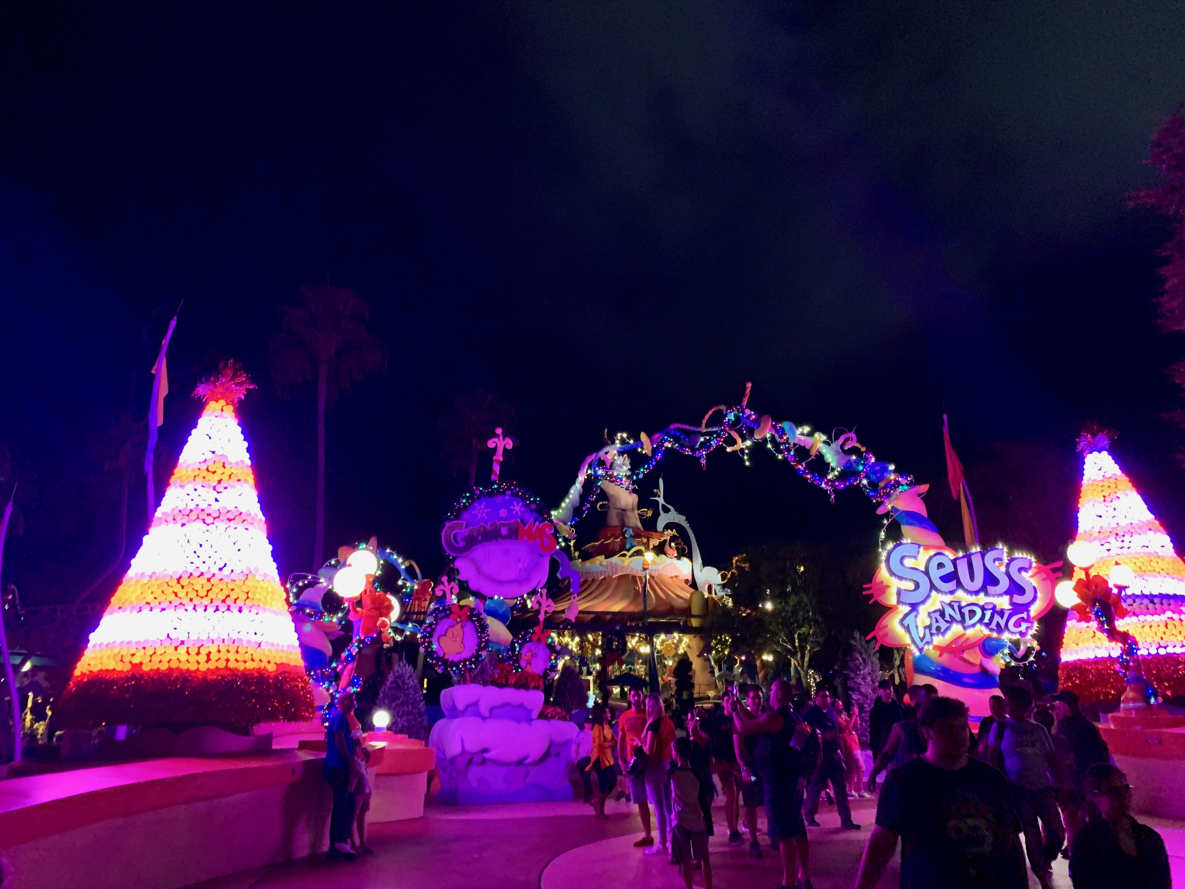 Next door, at Islands of Adventure, the holiday offerings are very unique and one of my favorites: the takeover of Seuss Landing by the Grinch.