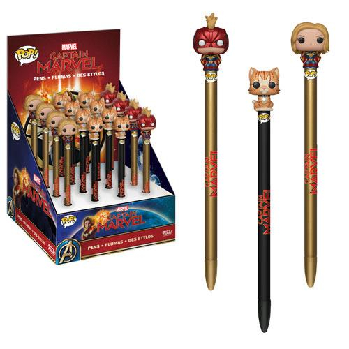 Go on an epic adventure with Carol Danvers—better known as Captain Marvel—a former U.S. Air Force fighter pilot with the power to change the world. Bring the Starforce to your favorite pen with Captain Marvel and Goose the Cat Pop! Pen Toppers.Captain Marvel Funko Pop! Figures