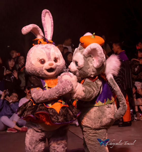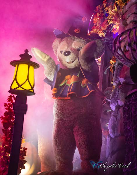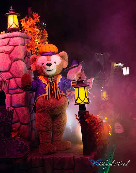 Duffy is not associated with Halloween at all in Tokyo, since he is exclusively at Tokyo DisneySea and their theme is “The Villains World.” He does march in Hong Kong Disneyland’s daytime parade, “Mickey’s Halloween Time Street Party.”