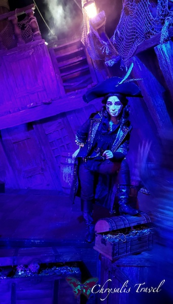 We were impressed by the number of female ghost pirates on the ship. However, the pirates would not materialize in the rain, and the attraction was shut down in cases of inclement weather.