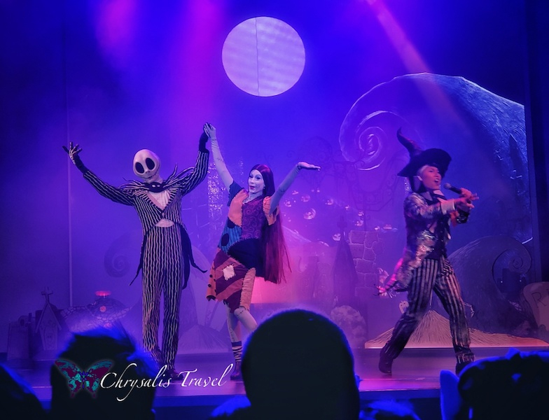 After dark, Jack Skellington hosted the “This IS Halloween” Dance Party on the Pepsi E-stage in Tomorrowland. (Shanghai Disneyland is the only Disney Park to be sponsored by Pepsi and not Coke).At Hong Kong Disneyland and Shanghai Disneyland, Jack spoke the local language (Cantonese / Mandarin), and Sally spoke in English. Guests in costume were invited onstage to participate.