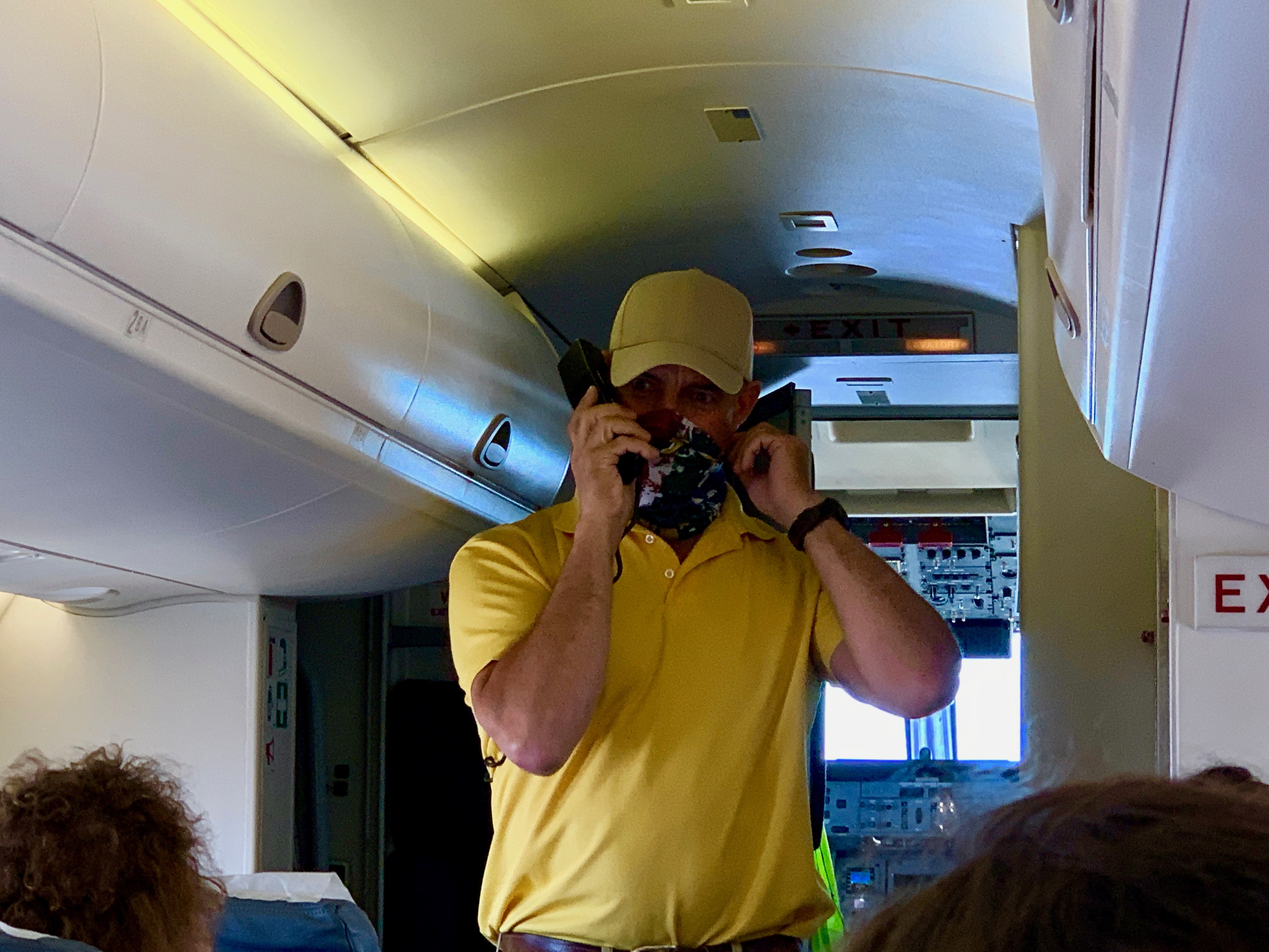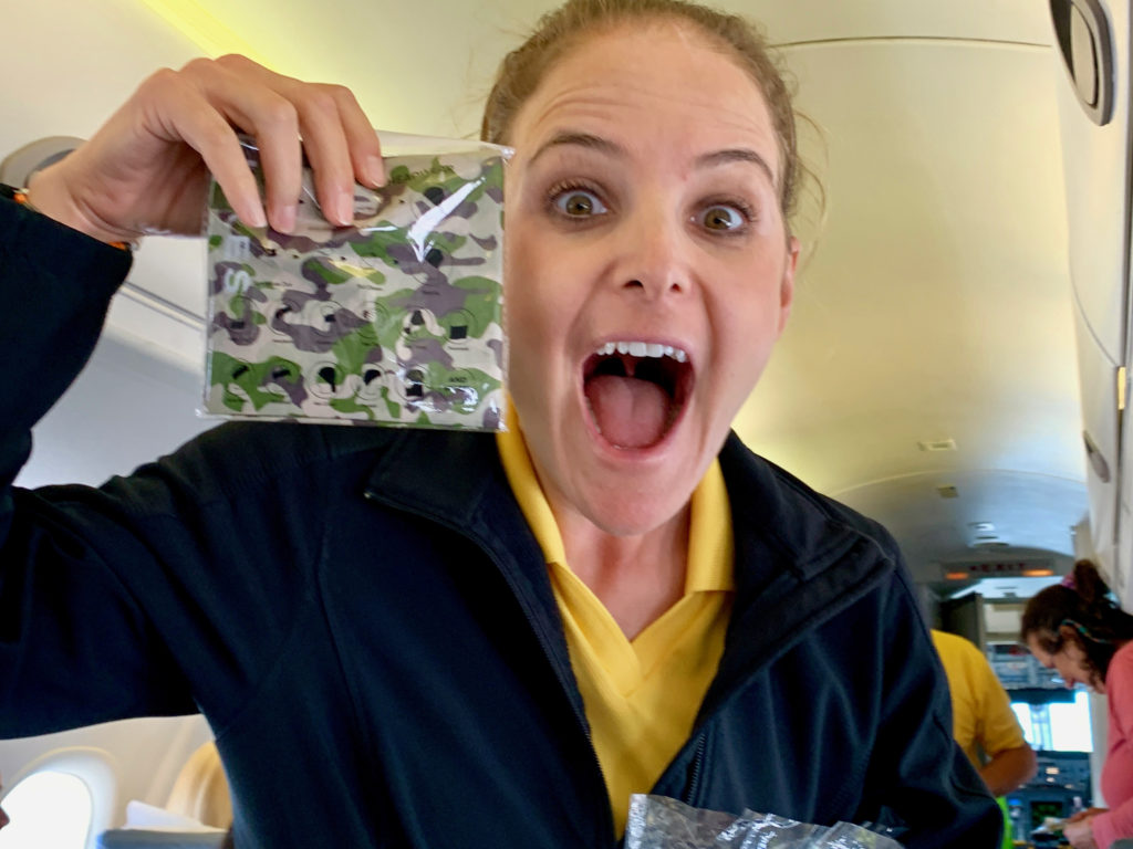 As we flew the 2 1/2 hours, our guide, Craig, took the microphone and told us all about the amazing Buff headwear. For those of you who've never heard of the Buff, it was made popular by the television show Survivor as a multi-use piece of circle clothe and can be used to make anything from a blindfold, a face guard, or a hat (unfortunately a brooch or a pterodactyl are not options). After a bit of back and forth between he and Kira, our other guide, about why he is telling us about something we could have bought our first few days or at the very end of the trip, we were all surprised by our very own and exclusive AbD Buff.