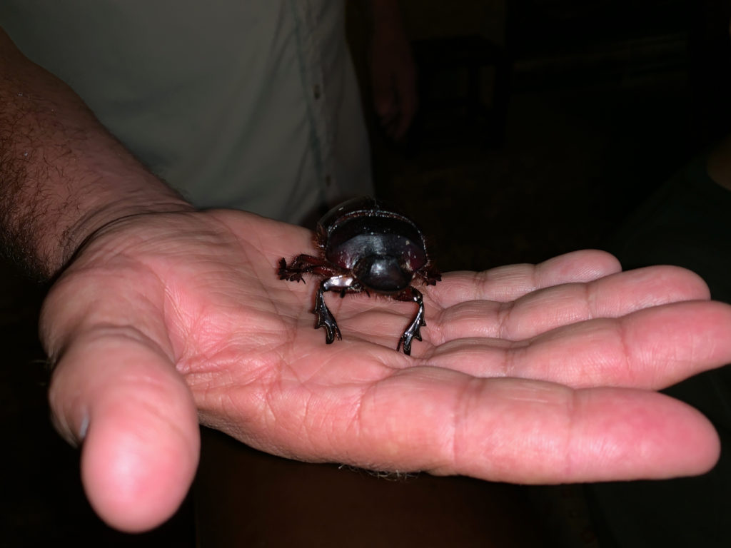 Of course, as anyone who has visited Walt Disney World knows, lightning can change everything very quickly. So originally we had an hour rain delay, but with the storm moving closer and closer, we moved to Plan B. Once the call went out for no reserve drives, Joe and Mark jumped right into putting on their own little show about the dung beetle. Finding a recently passed display model by the pool, it gave a perfect display as Joe told us all about this amazing creature.
