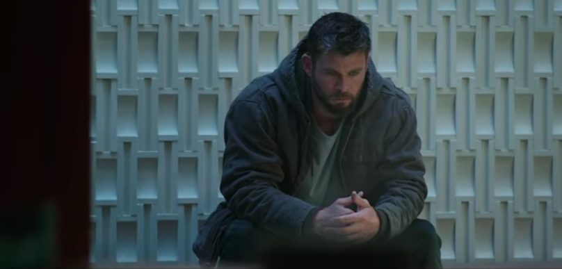 Next, we get our first look at Thor, who dons normal Earth-people clothes and appears to be distraught as he sits at what we assume to be the afore-mentioned Avengers facility. He does have both eyes by the way (though hopefully he washed the one he got from Rocket by now).