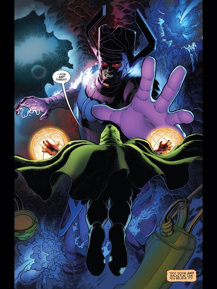 As is always the case, Doom wants to handle the issue himself and the first five pages of the comic exclusively feature his battle with the world-eating Galactus.