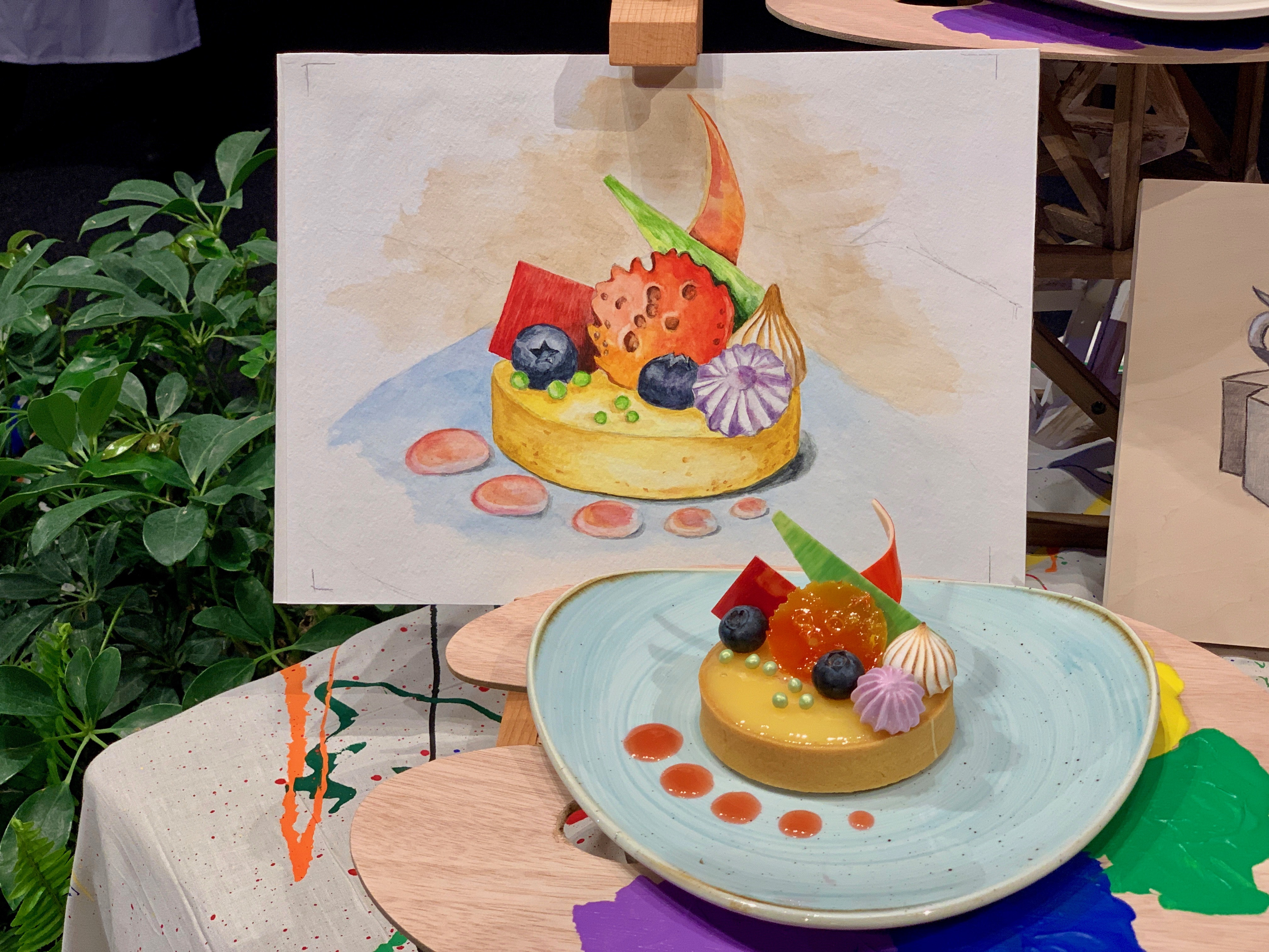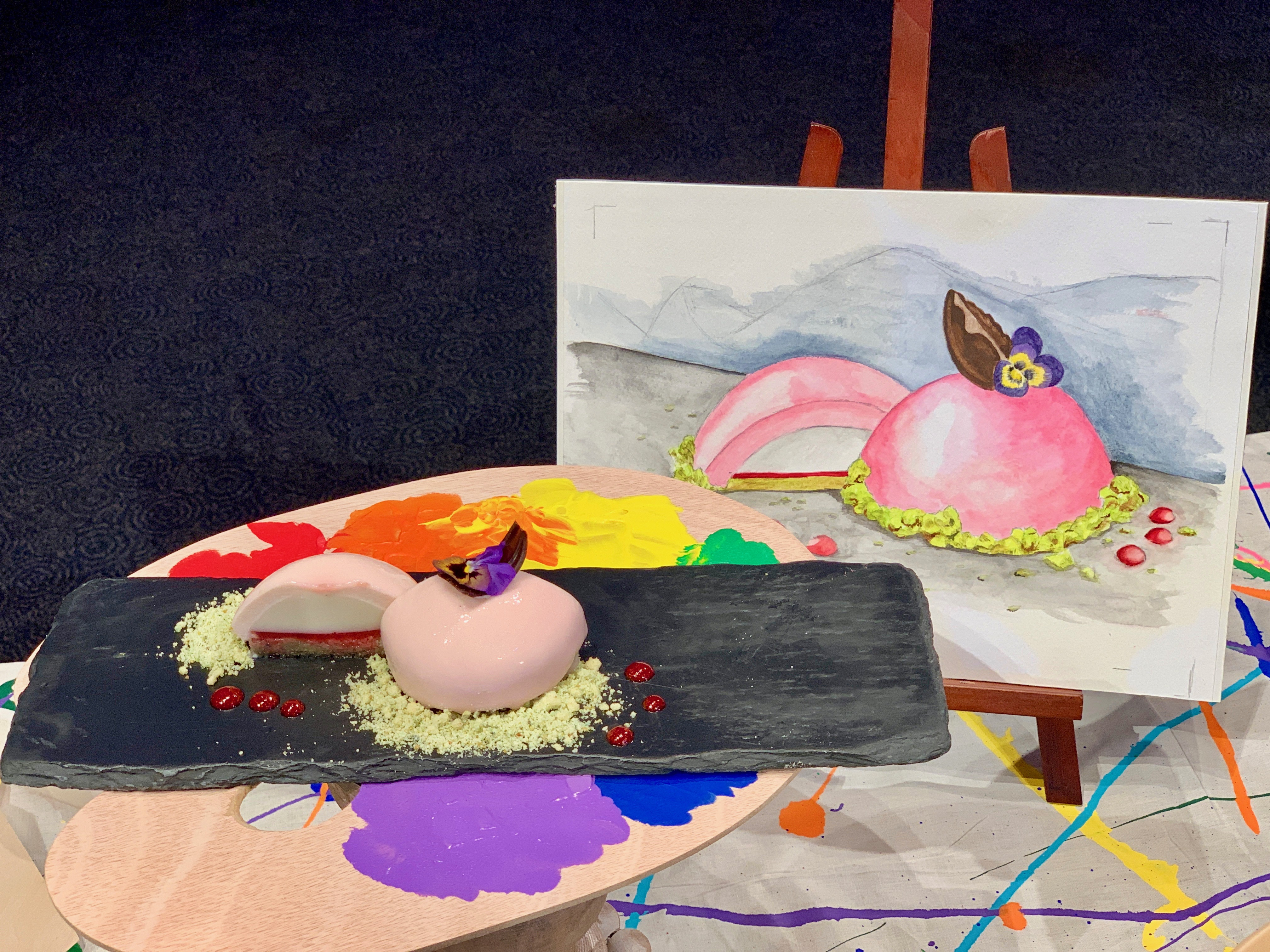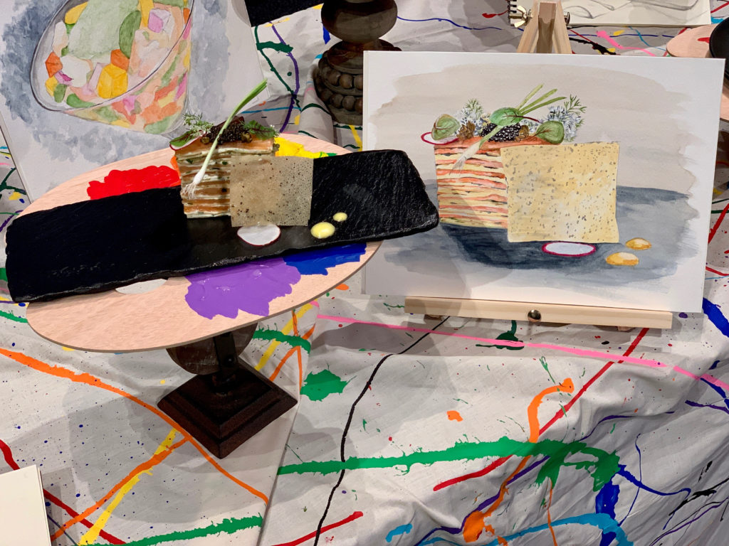 The Painter's Palate - Smoked Salmon and Cream Gâteau with Egg Yolk Cream, Paddlefish Caviar, and Micro-herbs