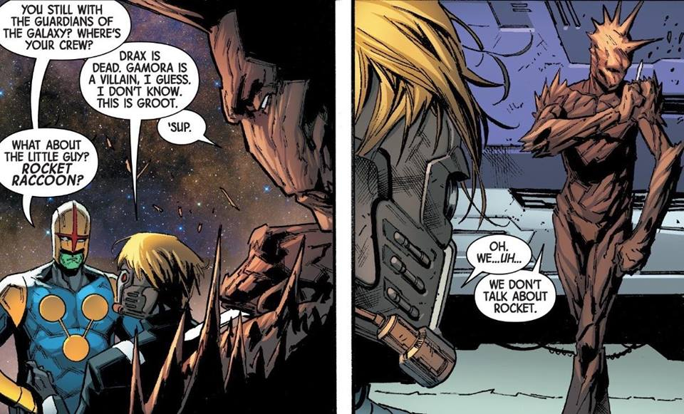 That’s right. Drax is dead, Gamora is a villain and they simply don’t talk about Rocket. The leaves just Star-Lord and Groot all alone as the remaining Guardians of the Galaxy.