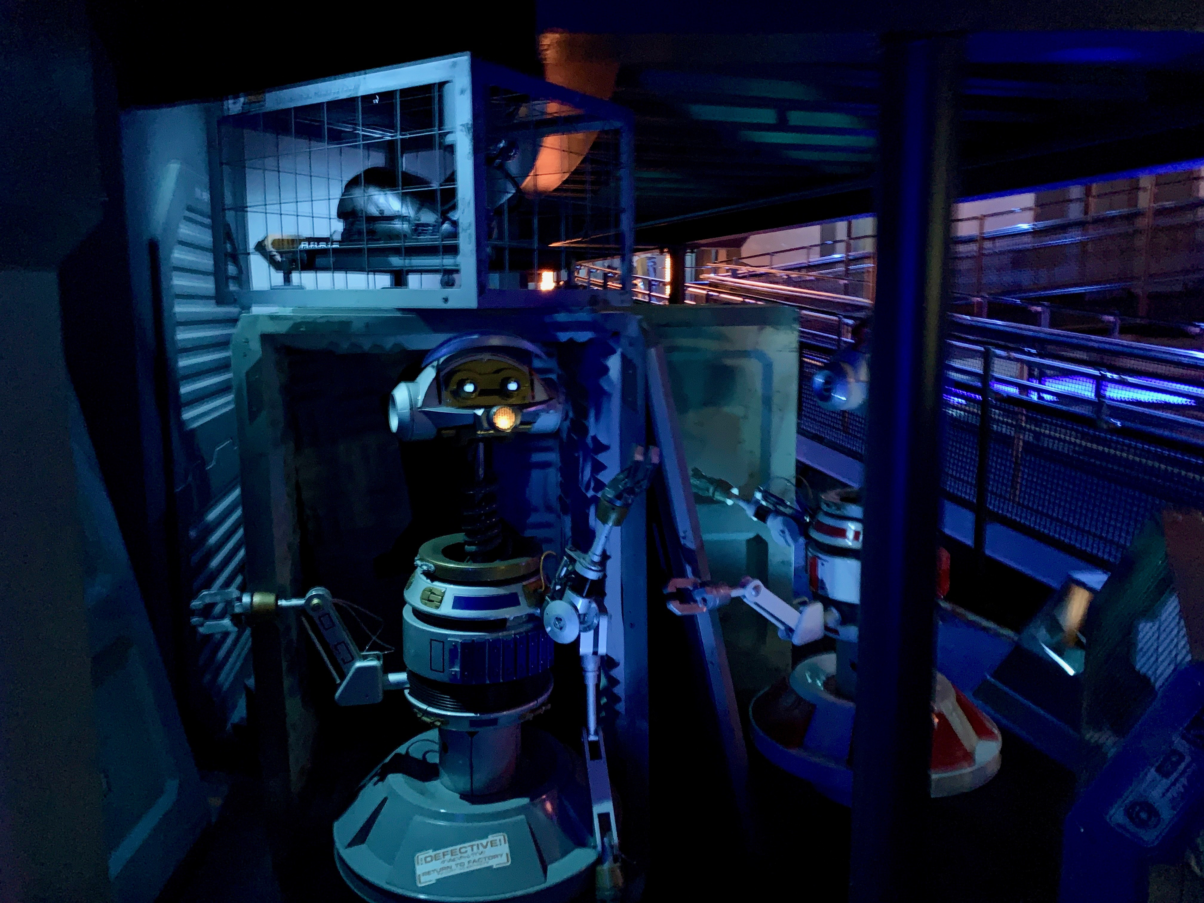 As we stopped next to the Starspeeder 1000, they pointed out some fun Easter eggs on the pipes between the walkway. I won't spoil it, but next time, make sure you take a close look and shared some knowledge about the attraction that the average guests may not know. Proceeding to the next room, we learn about the REX, the pilot of the original Star Tours and him being defective, and the G2, goose droids with their backstories going back to the Disneyland attraction America Sings.