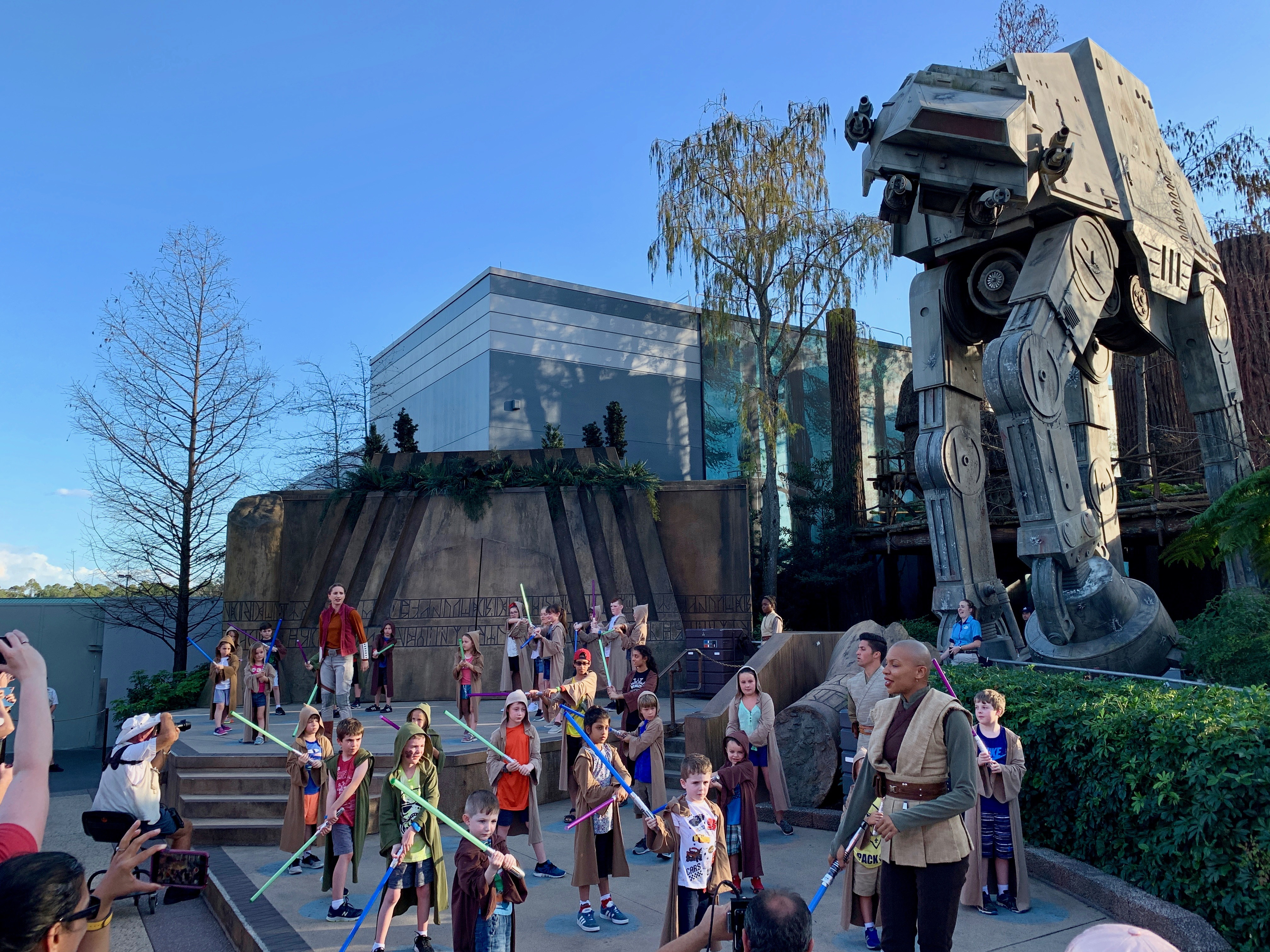 With the tour wrapping up, in the shadow of shadow of the replica of the Grumman’s Chinese Theater where Star Wars opened on May 25th, 1977, we were set free to enjoy the park until later that evening where we had reserved viewing for Star Wars: A Galactic Spectacular. One of the other adjustments from the first time I did the tour was the option for Jedi Training: Trails of the Temple. The first time, it was part of the tour. Now if you have Younglings, they can take part in it and the parents or any other guests can go and enjoy it after.