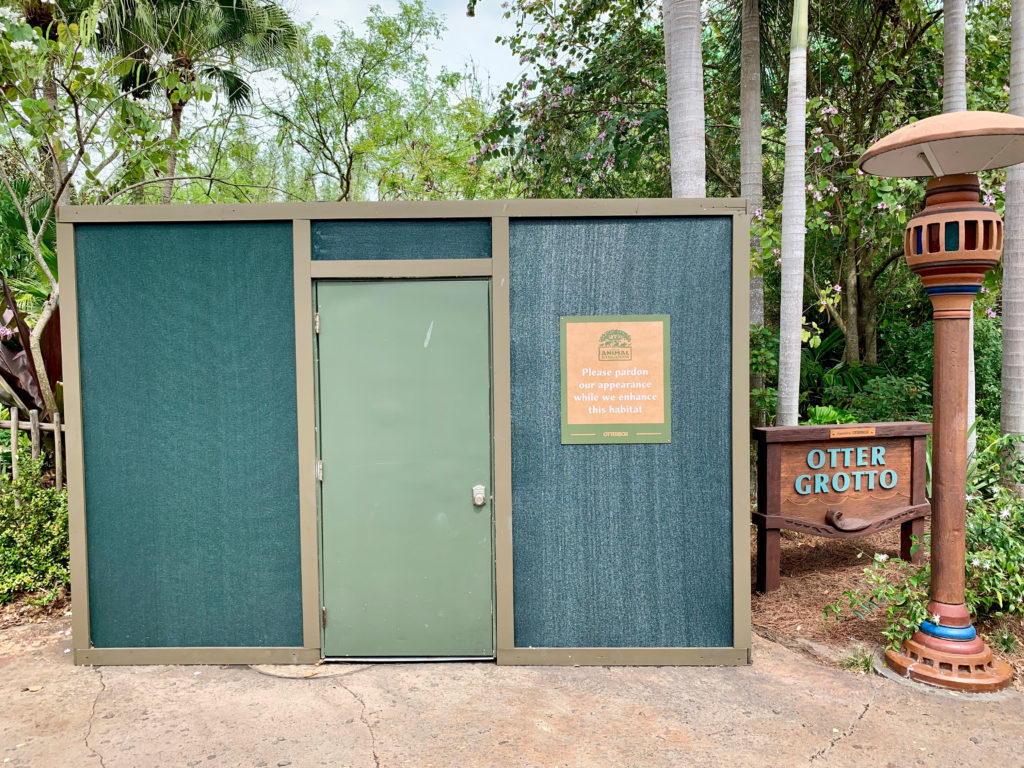 Out on Discovery Island, the new Otter Grotto supported by Otter Box, located near Pizzafaria, is still under construction with no opening date as of yet.
