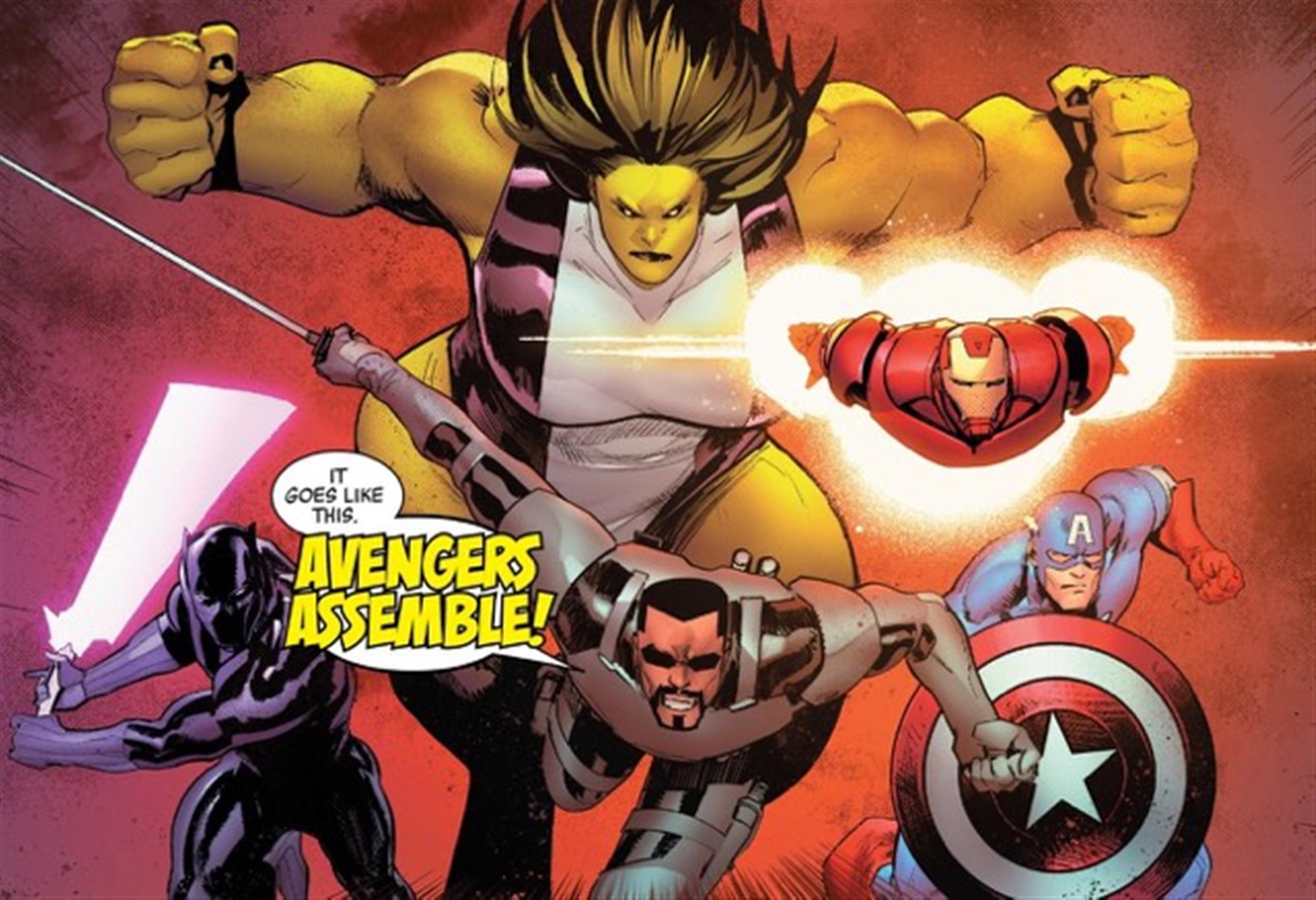 Naturally, that calls for a very different Avengers lineup. Captain America, Iron Man and Thor are all still there, and Captain Marvel, Black Panther and She-Hulk have been on-again, off-again members of the team for years. However, this team features a couple of new players: Ghost Rider and Blade.