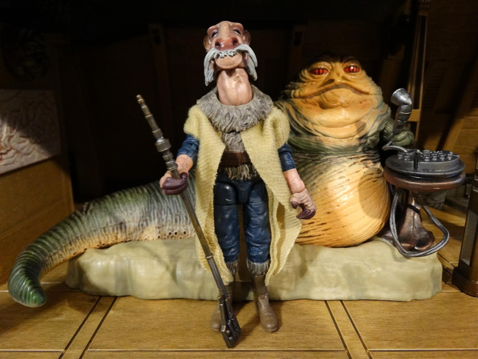 As for the two 3 ¾-inch scale action figures included with the set, neither has been completely unavailable before, but the updates of Jabba the Hutt and Saelt Marae AKA Yak Face are welcome, with both featuring better articulation and more detail than previous plastic depictions of the characters. Jabba can hold his microphone amplifier that he uses to address Luke Skywalker and Yak Face is accompanied by his staff and a Power of the Force collectors’ coin.