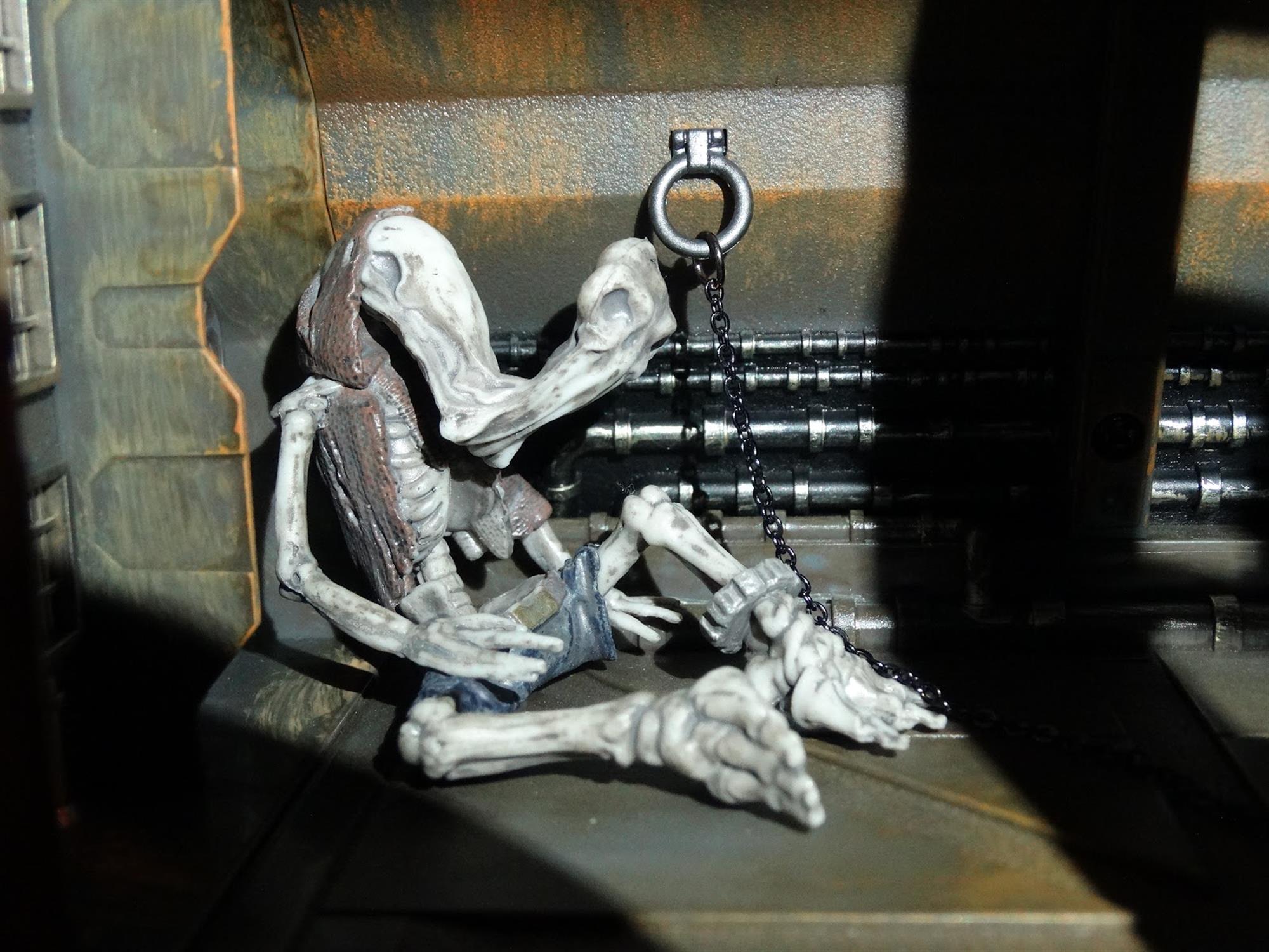 My favorite aspect of the Khetanna’s interior, however, has to be the jail cell. A trap door from the above deck drops down into this dingy dungeon, which I was shocked and delighted to find holds the rotting corpse of an Ithorian, who must have been long locked away and forgotten by Jabba’s Gamorrean guards. The jail door manually slides open and closed to allow human hands access into the detention area of the ship.