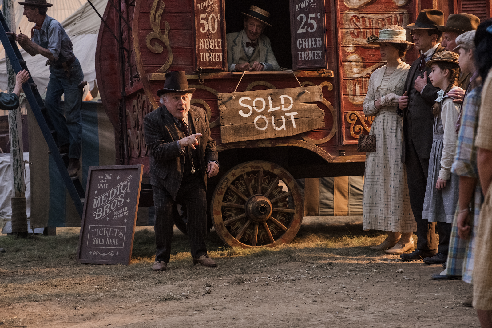 Homages to the animated feature are scattered about, with the song “Baby Mine” sung a few times. Other nods are present, such as Casey Jr. having a face on the front of the train, melodic sampling of songs and score in Danny Elfman’s compositions, and even a few pink elephants. But the most groan worthy moment comes when the ringmaster, played by the iconic Michael Buffer, uses lyrics from “When I See an Elephant Fly” to introduce the flying elephant act. He also borrows his signature “Let’s get ready to rumbleeeeee” when he says “Let’s get ready for Dumbooooooo.” If that doesn’t make your eyes roll, I don’t know what will.