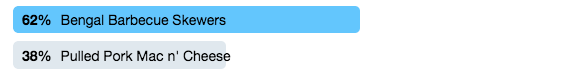 Before we move on to today’s matchup, let’s take a look at our last result. The Bengal Barbecue Skewers narrowly defeated the Pulled Pork Mac and Cheese from Eight Spoon Cafe at Disney’s Animal Kingdom to move on to the finals of the Savory & Salty region.