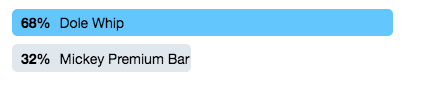 Before we move on to today’s matchup, let’s take a look at our last result. Personally, I thought this one was a tough decision, but it ended up being pretty one-sided. Dole Whip beat out Mickey’s Premium Ice Cream Bar with 68% of the vote to move on to our final 4.