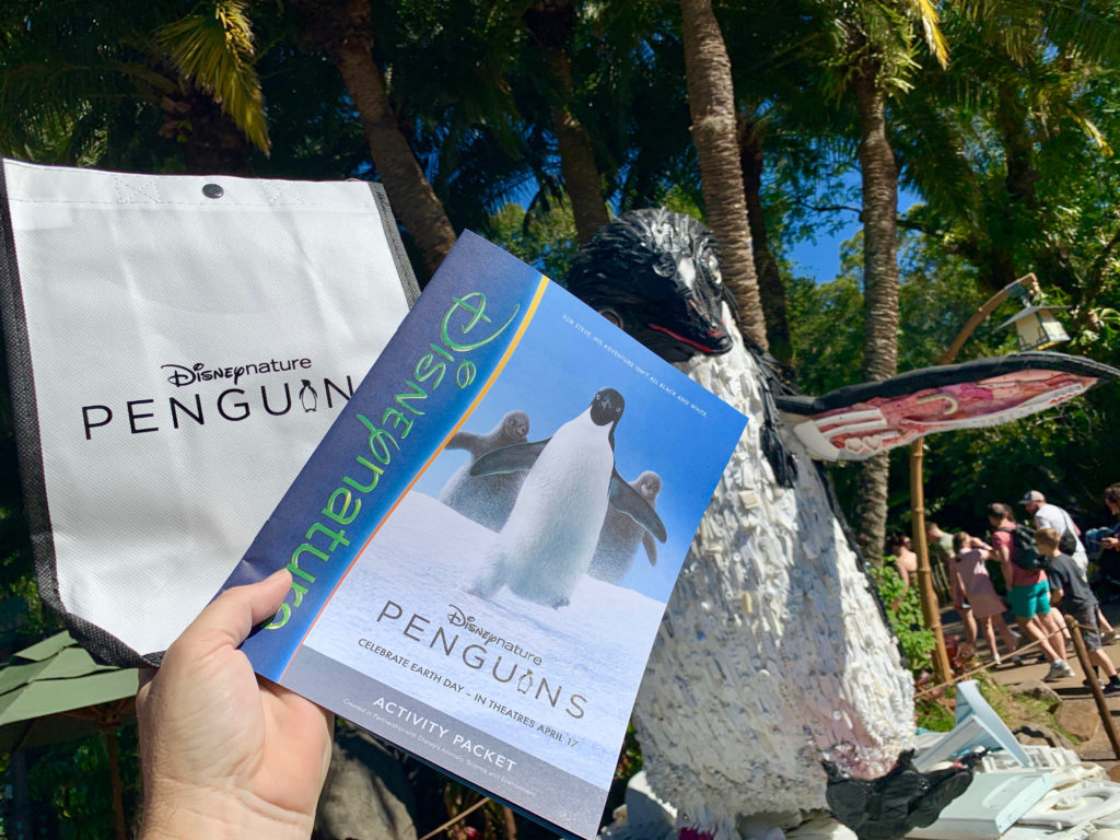 With the recent release of the newest DisneyNature film Penguins, a giant display made entirely of trash found in the ocean and washed up on beaches was placed at the entrance of the park helped guests understand how much waste ends up in our oceans and can hurt these beautiful creatures. Guests were also given a fun activity book, which you can download right HERE, to help learn what parts we can do to save the world day by day along with a reusable bag to start on our path to a better tomorrow.