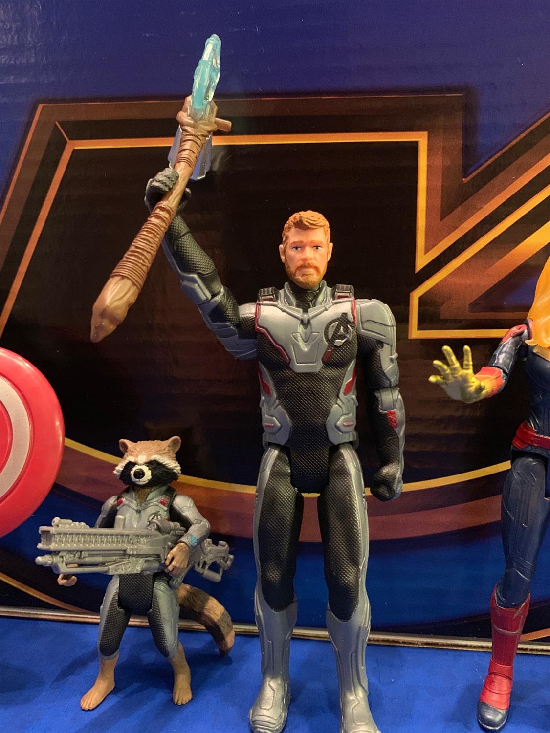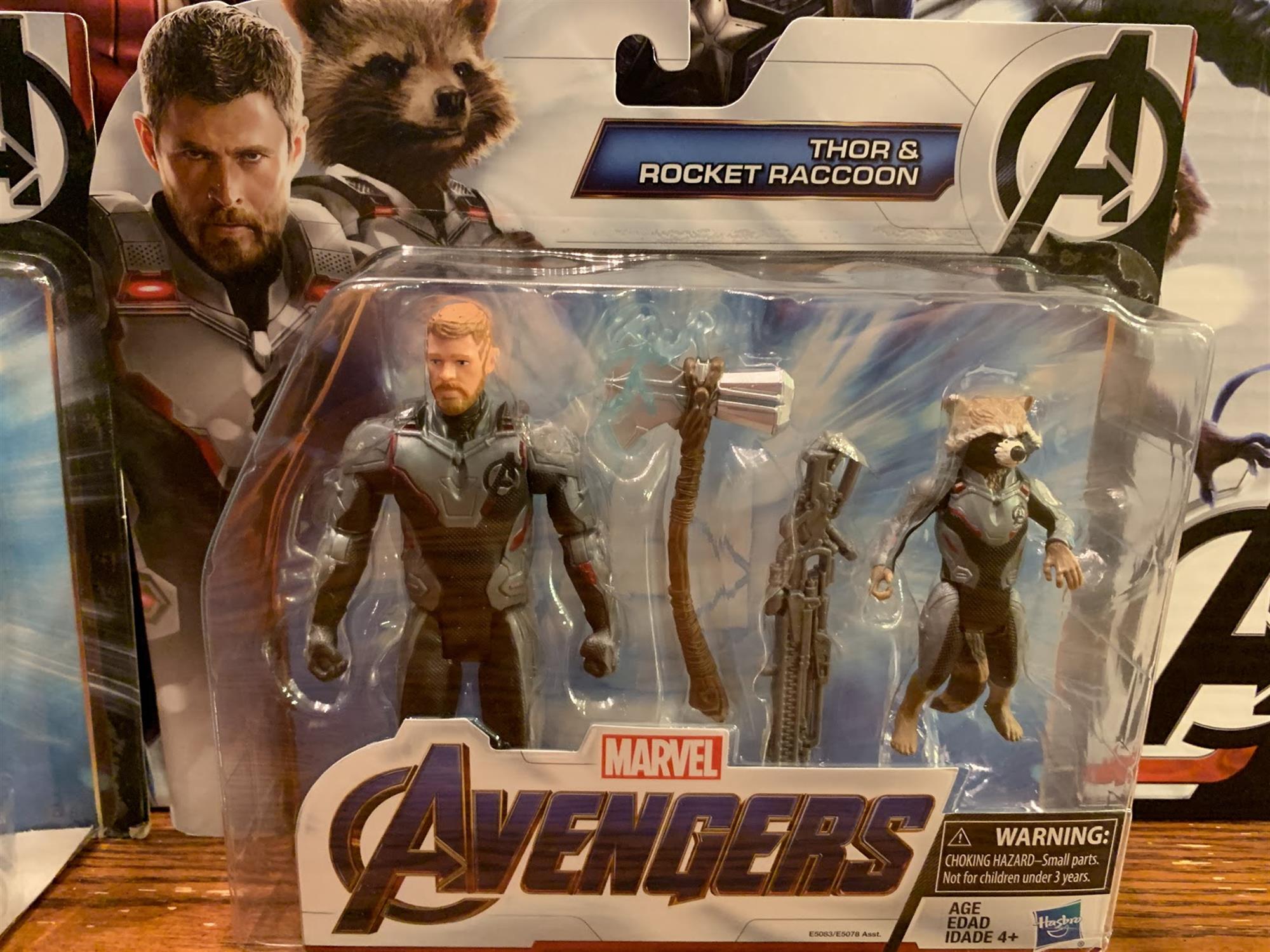 Two packes of playline action figures in 6-inch form were included in the box, each including two figures. Captain America teams up with Captain Marvel, while Thor and Rocket Raccoon make an unlikely pairing. There are additional characters available in this line, including Iron Man and War Machine.