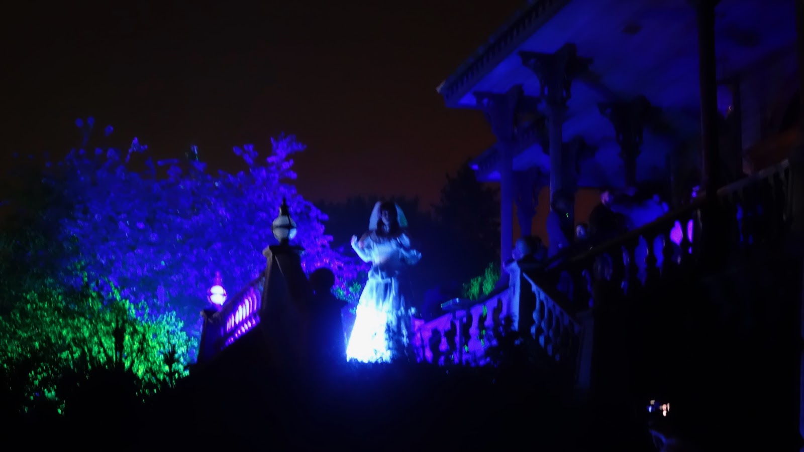 - When you first enter the attraction, a short scene in the foyer brings some great color to the dark and eerie manor. Of course, the twist on the iconic stretching room is also a highlight.