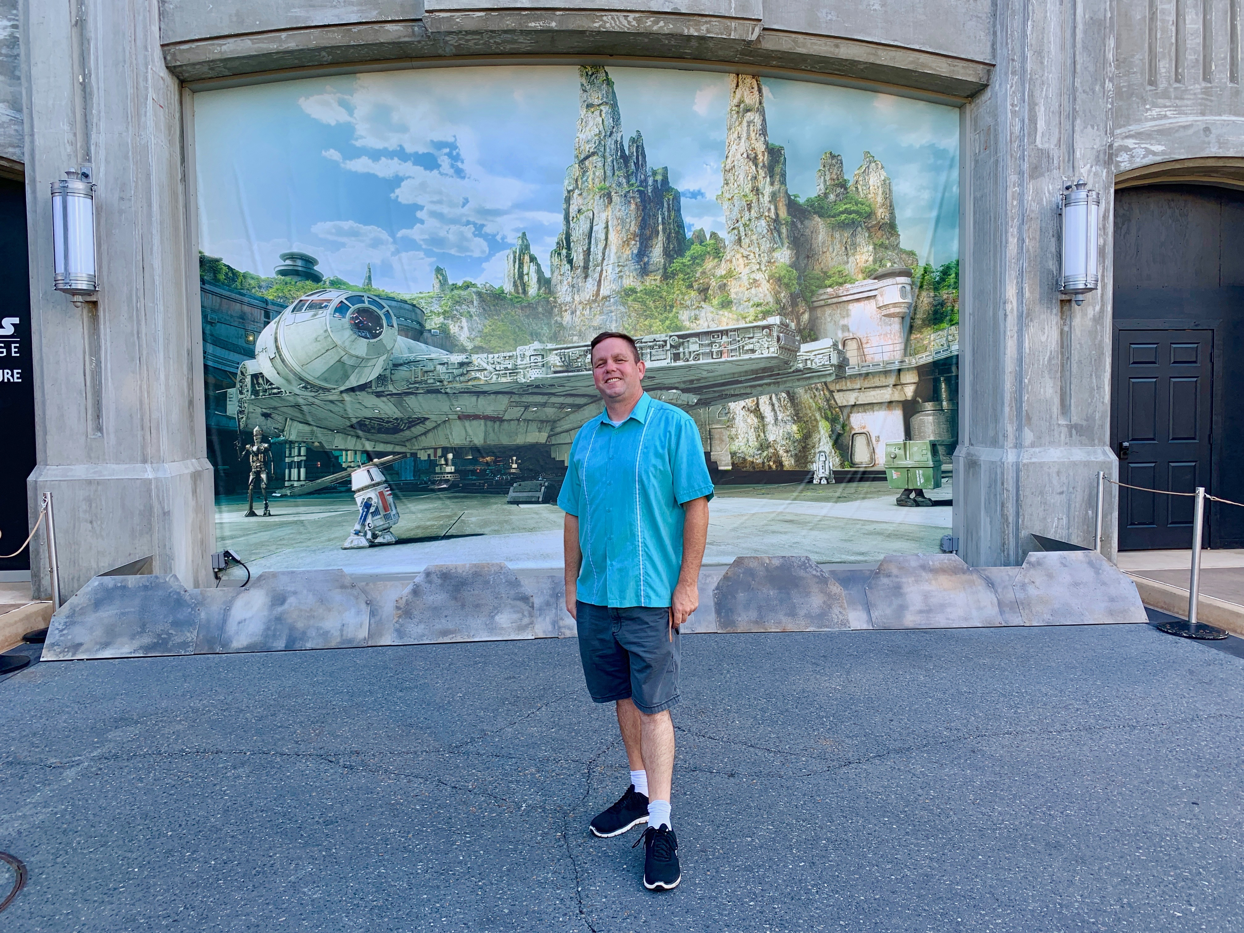 The above picture (minus the Resistance ships) is as close to the view I had when I entered through the cave. As we found out, the two major differences between Disneyland and Disney's Hollywood Studios will be the lay of the land. For Disneyland, the area is turned 180° and there will be only two paths in (i.e. Critter Country and Frontierland). The hanger in the background of the above picture was so huge in person I had to pull my safety goggles up to actually confirm it was not just some Disney trick. While I couldn't see the Falcon from where we stood we could see the walls of the outpost and they looked like they have been there for centuries with markings and damage that give it the feel of someplace you wouldn't want to approach if you saw it in the real world. After what felt like 2 seconds, it was time to exit the land. Of course, I walked backward to keep taking in everything. As I did, I noticed the small details of plants along the cave entrance that look so perfect most guests won't even notice them or think of how much work had to go into finding a space for a little plant that will need water and drainage to live that was added just for that extra touch of realism. Below you will find my interview with Jon Georges, Executive Producer, Walt Disney Imagineering about his part in bringing Star Wars Galaxy's Edge to life. Please note the footage shown is from the nearly complete Disneyland version of SWGE but will be very much what guests will see when the new land opens here on August 29th, 2019.