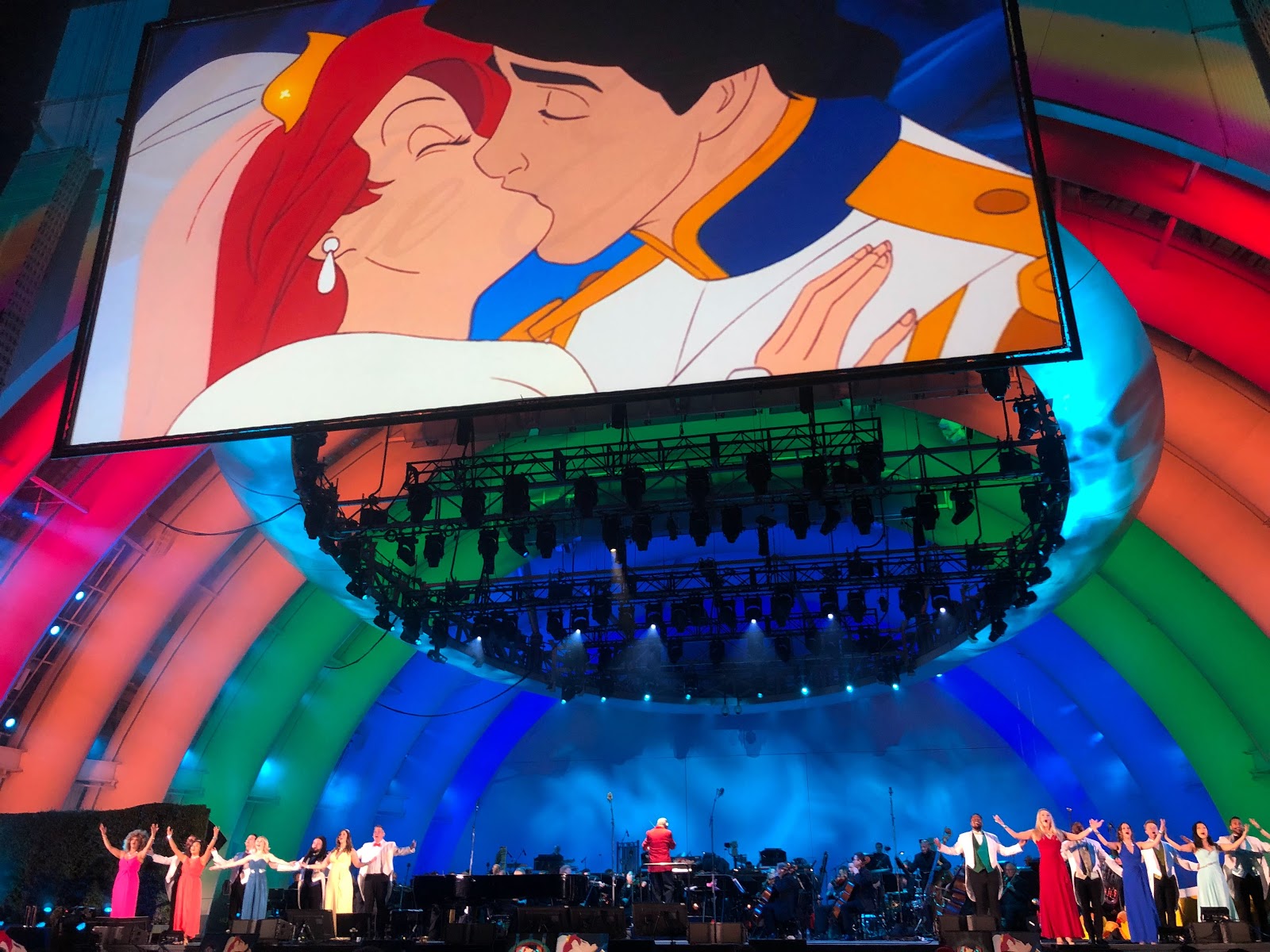 Beyond the sheer amount of starpower present there that evening, one of the biggest highlights of the Hollywood Bowl’s The Little Mermaid experience had to be hearing Menken’s score performed live by the full orchestra, as conducted by Michael Kosarin (Beauty and the Beast / Enchanted / Tangled) while watching the movie projected on three large screens above and to the sides of that famous stage where The Beatles once performed.