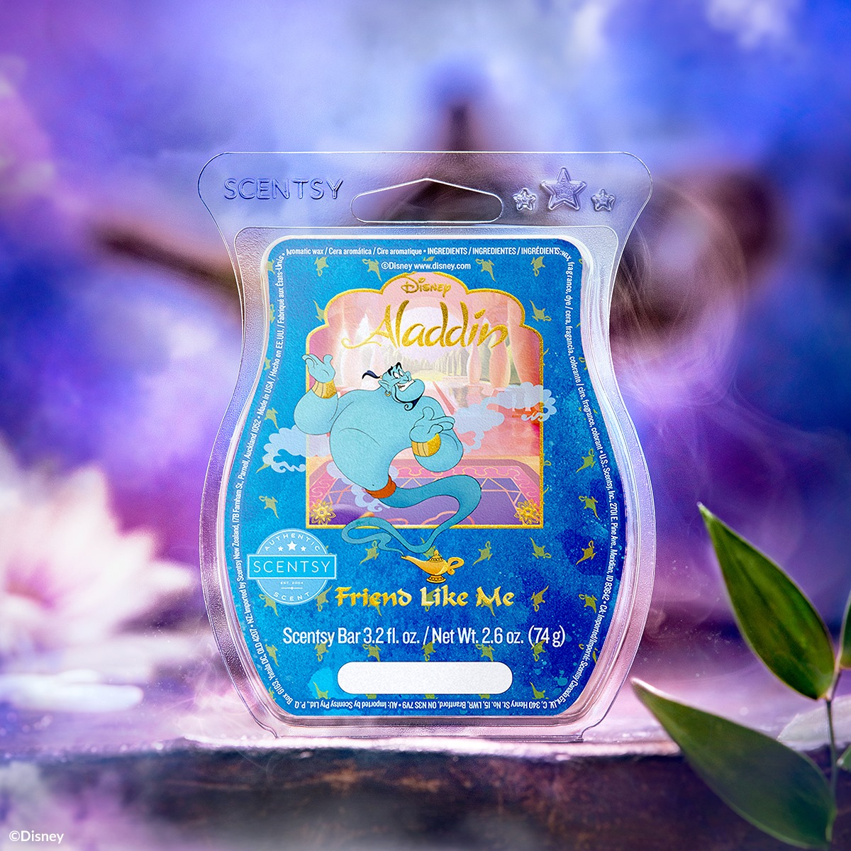 “Friend Like Me” is themed to Aladdin’s friend, Genie, who uses his infinite cosmic powers to fill your home with the smell of sapphire mist, blue cyclamen petals, and magnolia blossoms.