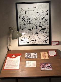 What else can you expect to see as you step into this arena of super heroes? Look for the classic Spider-Man animated cartoon series from the 1960s, complete with that catchy ear-worm theme song featured on display monitors with headphones alongside animation cells from the program. That is adjacent to original art from Steve Ditko, the first artist to work on the character. The Spidey-verse section of the exhibit is complete with the Tom Holland Spidey-suit from the most recent Spider-Man live-action flick.