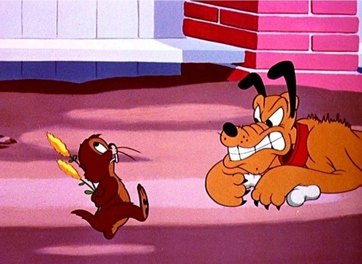 Mickey’s best friend Pluto is pestered by a gopher when trying to retrieve a bone he buried in the garden, an important load bearing column in the gopher’s home. Pluto gives the rodent a good fight and the little guy fights back. The game goes back and forth with each animal trying to one-up the other to get the bone back.
